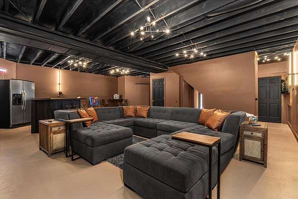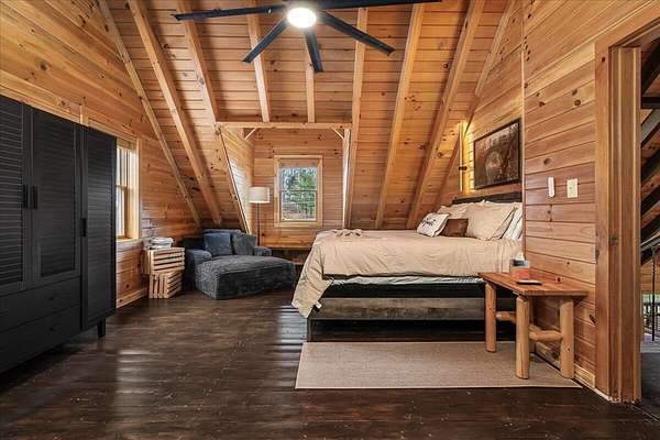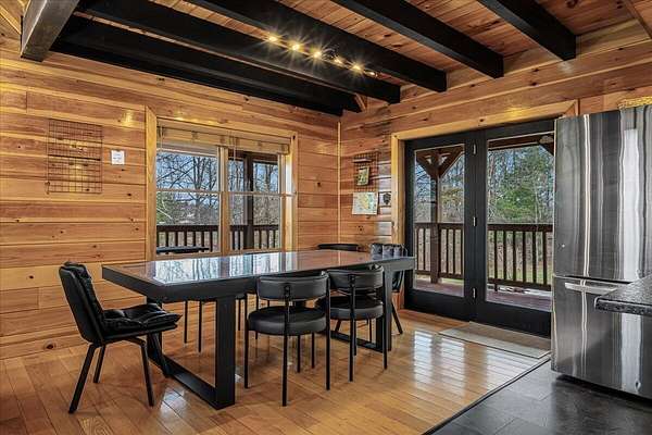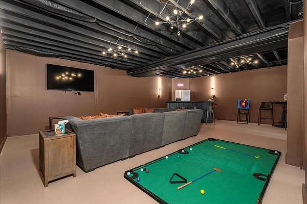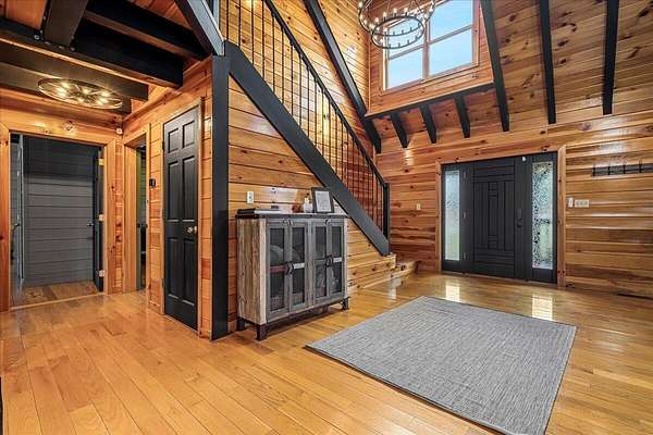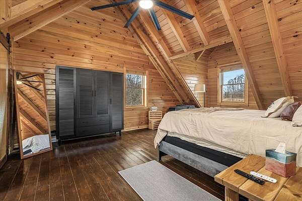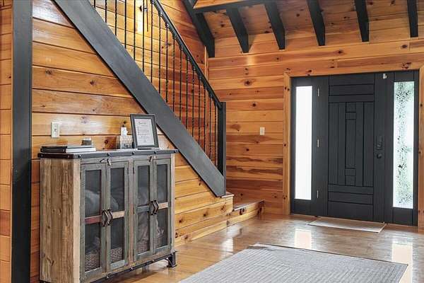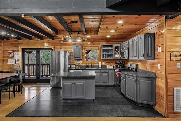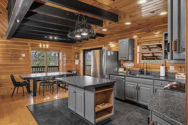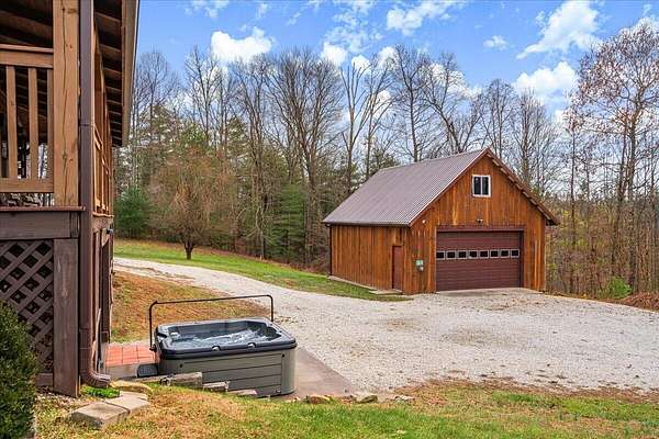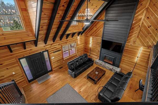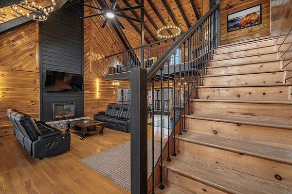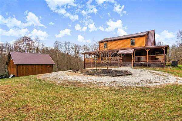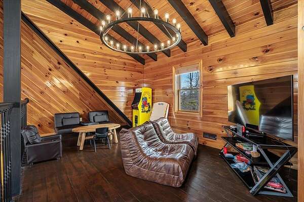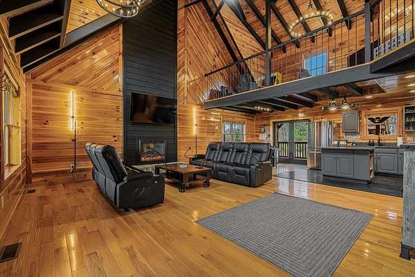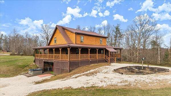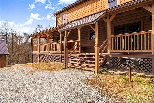 Spacious and well-appointed cabin located in Pine Ridge, KY, just minutes from the Red River Gorge. The home offers 3 bedrooms and 3 full bathrooms, with one bath on each level, and comfortably sleeps up to 10. The primary bedroom is located on the second floor and features a king-size bed. A main-level guest bedroom offers a queen-size bed, while an additional bedroom provides flexible bunk and twin sleeping options. The open-concept kitchen and dining area are fully equipped with stainless steel appliances and ample space for gathering. The living room features comfortable seating, a floor-to-ceiling electric fireplace, smart TV, and direct access to a wraparound porch. Additional living space includes a loft with arcade games and smart TV, along with a finished basement offering a large seating area, game space, bar area with seating, full-size refrigerator, and a full bathroom. Outdoor amenities include a private hot tub, fire pit, and expansive wraparound porch. Conveniently located with easy access while maintaining a private, wooded feel, the property is just minutes from hiking, climbing, and popular Red River Gorge attractions. Offered fully furnished and ideal as a primary residence, second home, or investment opportunity.