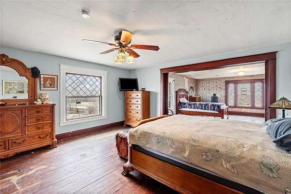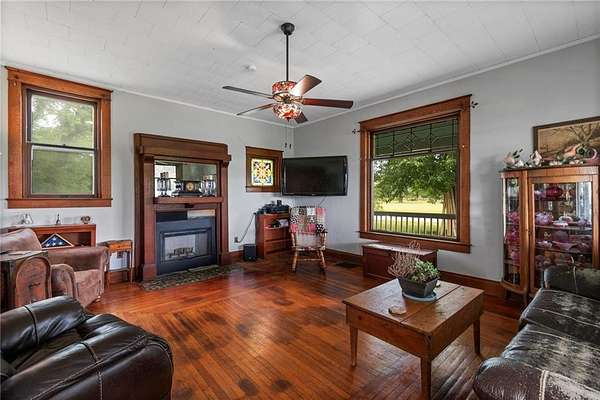 Wake up to quiet mornings, wide-open skies, and the timeless beauty of this historic 1906 estate, set on 20 private acres with a tranquil pond. This rare property offers the space, privacy, and character today's buyers crave-while preserving the craftsmanship and elegance of a bygone era. Inside, original hardwood floors and rich wood trim create a warm, inviting atmosphere, perfect for slow mornings with coffee or evenings spent hosting friends. A private butler's staircase leads to a secluded bedroom, ideal for overnight guests, a private office, or a peaceful retreat away from the main living spaces. The grand ballroom is a true showpiece-imagine holiday gatherings, milestone celebrations, elegant dinner parties, or even future event-style entertaining. Few homes offer a space that invites both history and possibility in such a memorable way. Step outside and enjoy the lifestyle only 20 acres can provide: quiet walks around the pond, room for gardening or hobby farming, space for horses or recreation, and endless opportunities to create your own private country retreat. Whether you envision outdoor entertaining, peaceful evenings under the stars, or simply the freedom of open land, this estate delivers a sense of calm and connection rarely found. This is more than a home-it's a historic estate lifestyle, offering privacy, character, and potential for modern luxury updates. Perfect for buyers seeking a luxury country home, historic residence, equestrian property, or private acreage estate. Schedule a private tour today and experience the space, history, and lifestyle this remarkable 1906 estate has to offer.