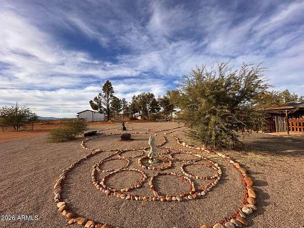 It is said that ancient wisdom teachers would gather here to share their wisdom and secrets. That the land still holds this wisdom for those who gather here today. Wisdom Spirit Ranch is seven acres of wisdom, including meditation gardens and open spaces for gatherings. With three homes designed to hold and nurture the gatherers - 13 bedrooms, seven bathrooms, 3 full kitchens, 5500 square ft. fully updated. WSR also includes a 1400 square foot building to hold conversation, meditation, yoga, dance, teachings, plus 500 feet on sacred Oak Creek This one of a kind property is Yavapai County, Airbnb compliant for those who always envisioned having a place to bring people together, from teachers to masters, in a private container to nurture who they beckoned. Have you been searching for property that spans acres in Cornville, with privacy, peace, Oak Creek frontage, multiple structures, your own well, owned solar & horse zoning? Are you wanting something oozing with possibility, yet has history, & a story? Well dub me Dinah & pick out a horse, because you have found her! This homestead has over seven acres, three houses, & 500 ft of frontage on Oak Creek. Largest house on parcel one is a six bedroom/3bathroom with a new septic system. Second parcel has a five bedroom/3bathroom house with a new septic system. Lastly, the third parcel has a two bedroom/1bathroom block house. The sale of this property contains three parcels: APN 40718013G, and APN 40718013A and 40718013F. The Seller has done countless upgrades, from replacing pipe, laying a labyrinth, putting in new flooring, remodeling kitchens, painting...she even finished out the old 1400 sq ft barn with new insulation, new sheet rock, new electrical. Just think: it can be used for community, gathering, yoga, Pilates, dance, the options are endless. From horse stalls, to fencing, to a buried cold cellar, to new PEX plumbing lines, new mini splits, proper permitting, surveys, to active rentals being sold furnished-this property has so much more than meets the eye. Reach out today for your private walkabout of this very special property. Seller is a licensed Real Estate Agent in the state of Arizona.