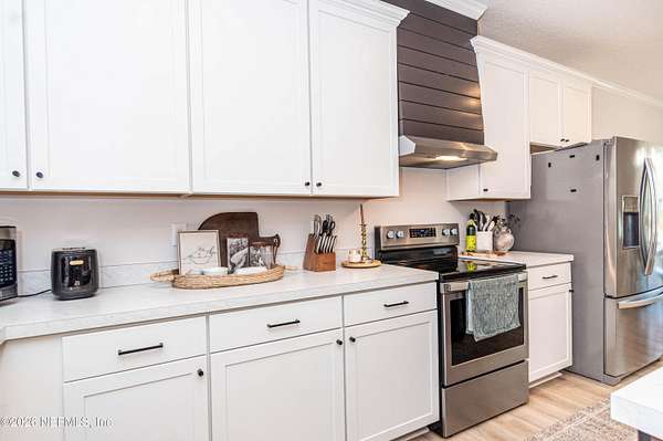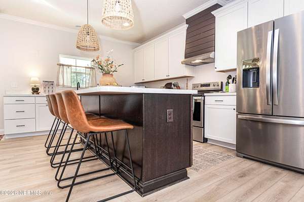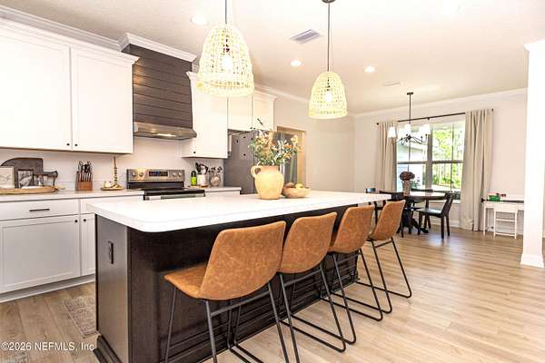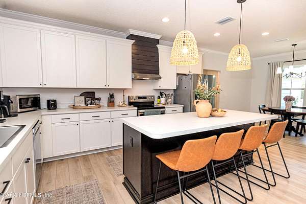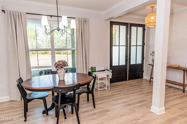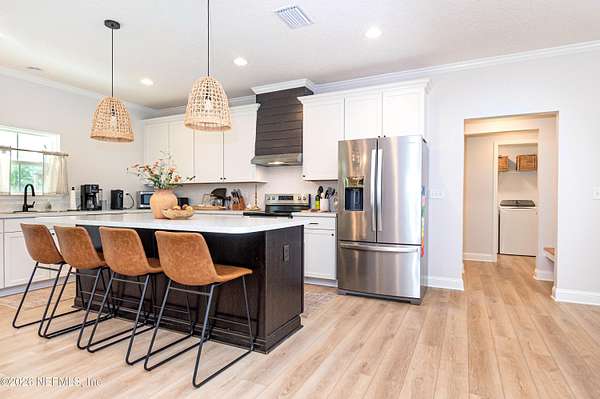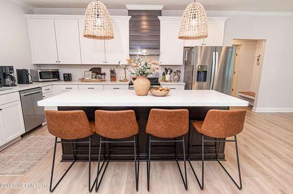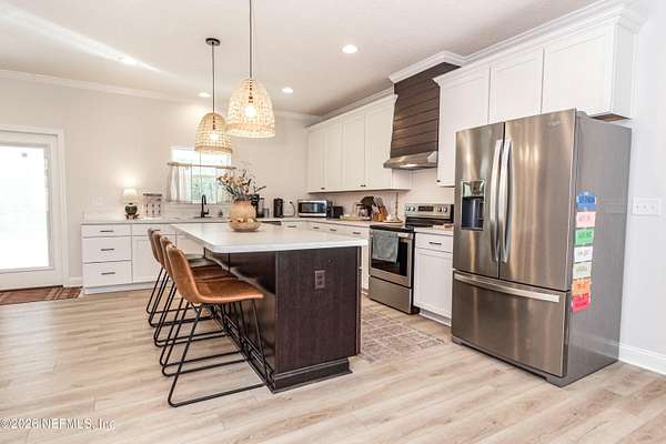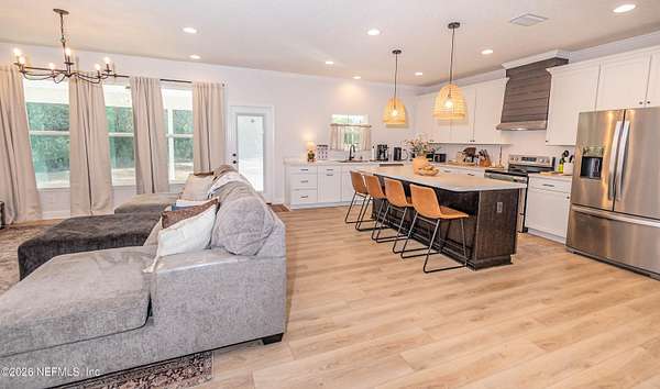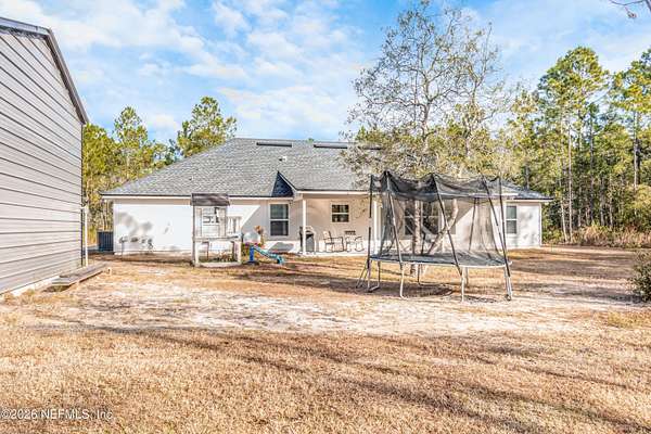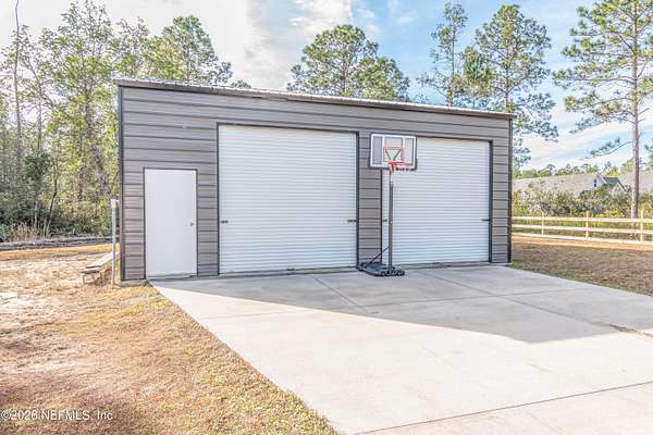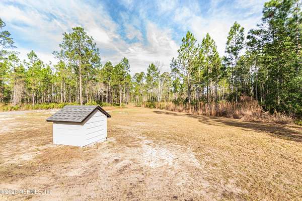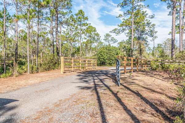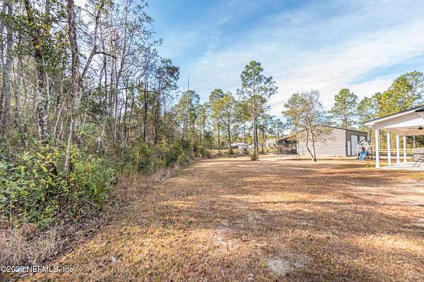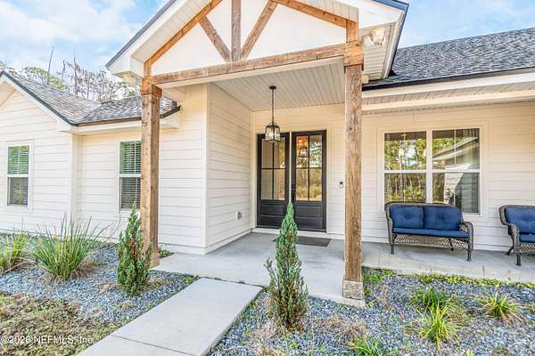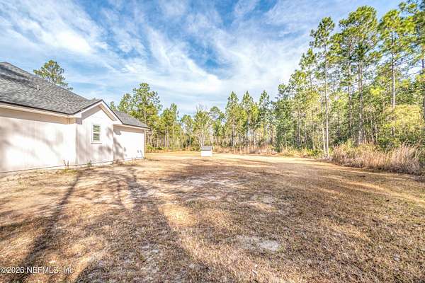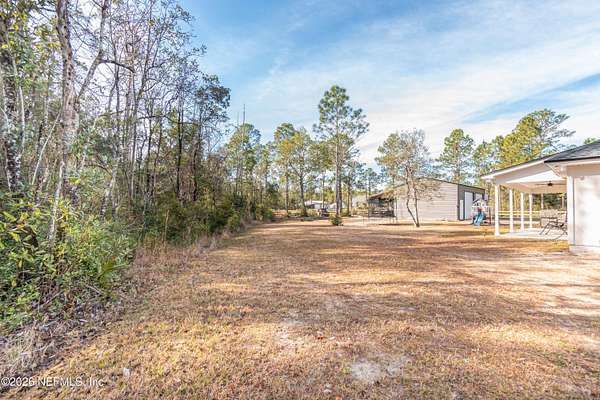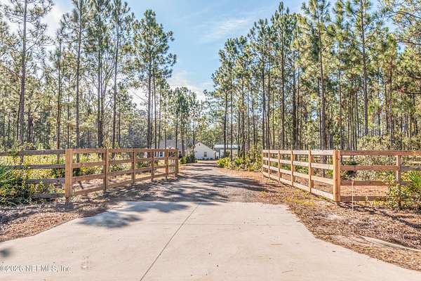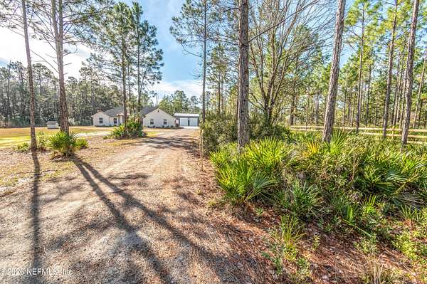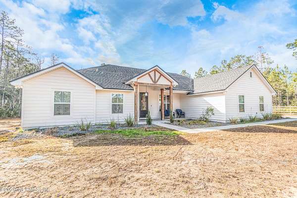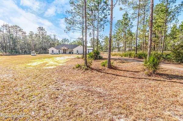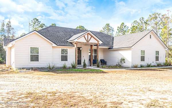 Tucked away on approximately 10.72 private acres, zoned Ag, this CUSTOM-BUILT 4 bedroom, 2 bath home (built in 2022) offers the perfect blend of relaxed country living and refined design. No HOA: just peace, privacy, and wildlife right outside your door. Located near Bryceville, FL, on the outskirts of Jacksonville, this is where the city melts away and the rural country opens up. Imagine slow mornings sipping coffee on the porch while deer and turkey roam freely, and quiet evenings enjoying the serenity of your own secluded retreat. From the moment you arrive, you're welcomed by a beautiful entryway with double doors that opens into a bright, open-concept interior featuring 9-foot ceilings throughout the entry, kitchen, dining, and living areas. The main living spaces are finished with durable, stylish LVP flooring, ideal for both everyday living and easy maintenance. The spacious living room is anchored by a cozy electric fireplace with built-ins on both sides, perfect for showcasing beautiful decor and creating a warm, inviting focal point. The open layout flows effortlessly into the dining area and large kitchen, where the kitchen island takes center stage. Upgraded cabinetry, a striking range hood, and carefully selected designer light fixtures throughout the home elevate the space with a clean, modern feel, ideal for entertaining or simply enjoying daily life. The LARGE primary suite is a true private retreat, featuring a spa-like bathroom with a soaking tub, a gorgeous walk-in shower, dual vanities with stunning mirrors and lighting, and an exceptionally spacious walk-in closet. The three additional guest bedrooms and bathroom are all generously sized, offering comfort, flexibility, and privacy. Storage and functionality shine throughout the property. The oversized 2-car attached garage easily accommodates FULL-SIZE vehicles, while the attic includes flooring for additional storage. For those needing even more space, the property also features a 24x31 detached 2-car garage with a 12x31 lean-to/carport, ideal for boats, ATVs, equipment, workshops, or extra vehicles. This property delivers luxurious privacy, modern construction, wide-open acreage, and everyday tranquilityall without HOA restrictions. If you're searching for a newer custom home with land near Bryceville, FL, offering easy access to Jacksonville while enjoying true country living: WELCOME HOME to 10800 Plummer Rd.
