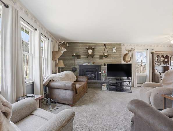 Country Views & Easy One-Floor Living! Enjoy the convenience of first-floor living in this well-maintained ranch home in Stevensville, PA. The cozy living room features a gas fireplace, while the dining room is surrounded by windows offering beautiful countryside views. The functional kitchen makes everyday meals easy. The main floor includes 2-3 bedrooms, a full bath, and first-floor laundry, with an additional laundry option in the basement. Downstairs offers a family room, workshop area, bathroom, and extra storage. Recent updates include a newer furnace and whole-house generator. Outside, you'll find an attached 2-car garage, pole barn for extra storage, and a backyard perfect for pets, gardening, or relaxing outdoors. Affordable, comfortable, and full of country charm!