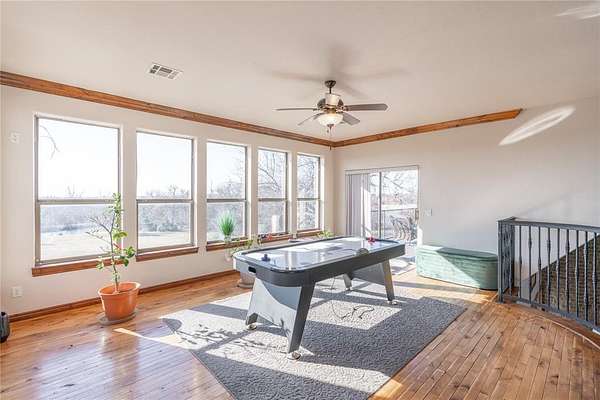 Experience the ultimate luxury retreat on 8.92 sprawling acres (MOL) in the prestigious Edmond School District! This exceptional 4-bedroom, 4.1-bathroom estate offers unparalleled privacy with its own gated entrance off Coffee Creek Road and room for horses. The home was designed for sophisticated living, featuring a massive great room with brand-new bamboo wood flooring, a striking curved wood-burning fireplace, and elegant spiral wrought iron stairs. The chef's kitchen was updated just two years ago with marble imported from Italy, a gas stove, LG appliances, built-in spice and utensil racks, and dedicated wine and coffee fridges that stay with the home. Every spacious bedroom serves as a private sanctuary with its own en-suite bath, including a primary retreat featuring a 2024 marble vanity, a rainfall shower with jets, a soaker tub with Bluetooth speakers, and a massive walk-in closet with a laundry chute. For enthusiasts, the property includes a 6-car garage with MyQ app integration, a 40x60 garden, a private stocked pond, and fruit-bearing trees including peach, walnut, and crabapple. The lifestyle continues outdoors with a hot tub and a fully functioning chicken coop with chickens included! Practical upgrades abound with a 2022 roof, LeafGuard gutters, a water softener, and Jellyfish permanent holiday lighting. Whether you're enjoying the air hockey loft with its private deck or the basketball court, this estate offers a rare blend of rural tranquility and modern high-tech convenience.