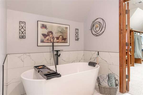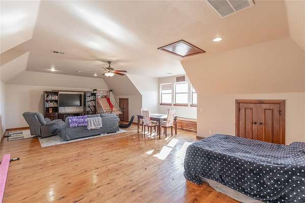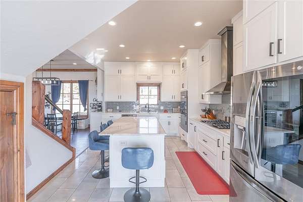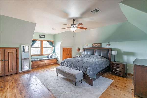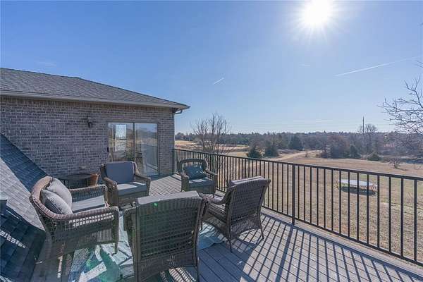 Experience the ultimate luxury retreat on 8.92 sprawling acres (MOL) in the prestigious Edmond School District! This exceptional 4-bedroom, 4.1-bathroom estate offers unparalleled privacy with its own gated entrance off Coffee Creek Road and room for horses. The home was designed for sophisticated living, featuring a massive great room with brand-new bamboo wood flooring, a striking curved wood-burning fireplace, and elegant spiral wrought iron stairs. The chef's kitchen was updated just two years ago with marble imported from Italy, a gas stove, LG appliances, built-in spice and utensil racks, and dedicated wine and coffee fridges that stay with the home. Every spacious bedroom serves as a private sanctuary with its own en-suite bath, including a primary retreat featuring a 2024 marble vanity, a rainfall shower with jets, a soaker tub with Bluetooth speakers, and a massive walk-in closet with a laundry chute. For enthusiasts, the property includes a 6-car garage with MyQ app integration, a 40x60 garden, a private stocked pond, and fruit-bearing trees including peach, walnut, and crabapple. The lifestyle continues outdoors with a hot tub and a fully functioning chicken coop with chickens included! Practical upgrades abound with a 2022 roof, LeafGuard gutters, a water softener, and Jellyfish permanent holiday lighting. Whether you're enjoying the air hockey loft with its private deck or the basketball court, this estate offers a rare blend of rural tranquility and modern high-tech convenience.