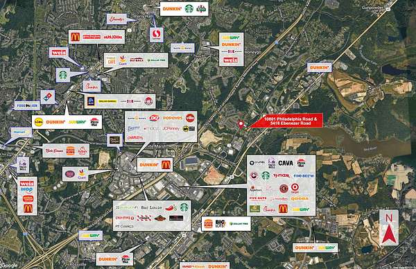 10801 Philadelphia Road consists of 5.25 Acres of BM zoning, with an existing 5500 +/--sq ft retail building in front of the property and a Vacant 8400 +/--sq ft building at the rear side of the property. 5418 Ebenezer Rd is 3.75 +/- acres of land with ML zoning. Both properties are being offered together for lease. This is a great opportunity for Redevelopment or for current building use.