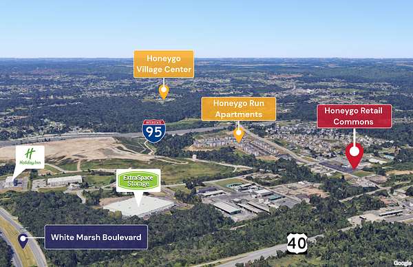 Both properties offer convenient access to the transportation network, strategically located between I-95 and Route 40/Pulaski Hwy. Situated less than a mile (and one traffic light) from a full I-95 interchange and a quarter-mile from U.S. 40 (Pulaski Highway), accessibility to the local area and the wider market make this a strategic site. Notable features include: