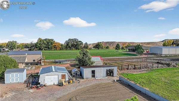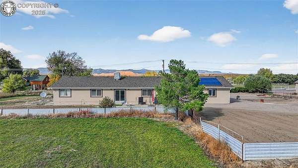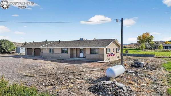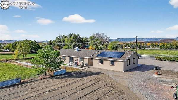 This is a one-of-a-kind home in Fremont County! "LAND with WATER" are both included. Over 2.5 acres of land, a freshly seeded field, surrounded with new gated pipe, three shares of Rainbow Ditch and up to four hay cuttings per year. Look at this picturesque peaceful area, a meadow that houses deer and elk each night, all fenced, green and gorgeous. Perfection describes the care taken on this property. There are 2 large areas for gardening that include a 3rd source of water, a plentiful pumping well. A 29' X 30' garage is primary. The property features extra outbuildings. A typical storage shed, a garage with 220 and extra area for more shop space, a hay storage building, and a storage area with the perfect covered area to park the tractor. (could be included w/the purchase w/a good offer)! Newly updated and upgraded throughout this beautiful home. Brand new stucco with accented pop outs, all new colors, facia and soffit that have all been repainted as well as newly painted gutters. A 50+ year upgraded composition roof just installed plus a brand-new roof mount swamp cooler. There will be little to no maintenance on the exterior of this home for quite some time. In addition, there are solar panels that have been installed. The bill monthly is approximately $16. The payment on the solar is $95./month. Inside this beautiful home there is a ceramic tile entrance with very nice plush carpeting throughout living area and bedrooms, accented with ceramic tile in the kitchen, and bathrooms w LVP, and in the bright new added laundry is hardwood flooring. A woman needs a large, accommodating kitchen with endless cabinet space and a huge island that all the Christmas cookies and treats can fit on after baking all day. Of course, the kitchen is all that plus new Stainless-Steel appliances! The baths are completely remodeled and beautiful! The home is impeccable, and like the exterior, has been manicured throughout. This is a turn-key property. So, come home for the holidays!