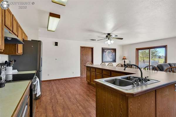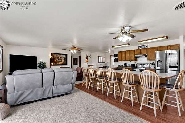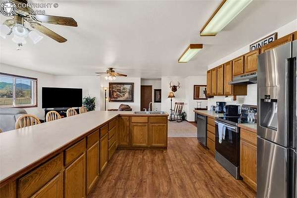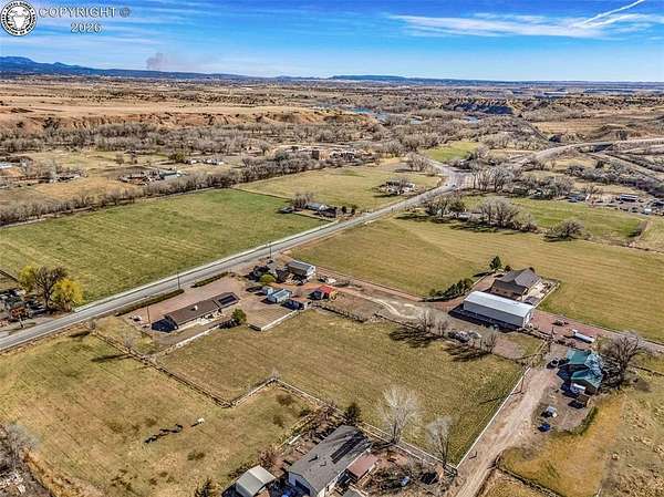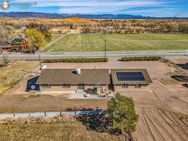 THIS HOME is not a drive by. It has been manicured both inside and out. New stucco with accented pop outs, new facia and soffit that have all been repainted, new gutters and all new colors for the inside and outside of the home and a new 50+ year roof and a brand new roof mount swamp cooler. The garage is 29' X 30' finished inside w/ drywall, tape and texture, paint etc. There will be little to no maintenance on the exterior of this home for quite some time. In addition, the fantastic home w/ over 2.5 acres and irrigation that has a freshly seeded field, surrounded with new gated pipe, three shares of Rainbow Ditch and up to four hay cuttings per year. Look at this picturesque peaceful area, a meadow that houses deer and elk each night, all fenced, green and gorgeous. Perfection describes the care taken on this property. There are 2 large areas for gardening that include a 3rd source of water, a plentiful pumping well. Lots of extra outbuildings, typical storage shed, a garage with 220 and extra area for more shop space, hay storage and a covered area to park the tractor. Newly updated and upgraded throughout the inside of this beautiful home as well. There is a brand new boiler for heat, new hardwood planking as well as new luxury vinyl, and newer plush carpeting. Both bathrooms and the separate laundry room have all been completely gutted and remodeled. In addition, there are solar panels that have been installed. The bill monthly is approximately $16. The payment on the solar is $95./month. This property and home are definitely not their age but instead a property that everything from top to bottom and inside out are new. This combination could not be purchased together for this type of price. Before someone else discovers this property, call for your private showing today.