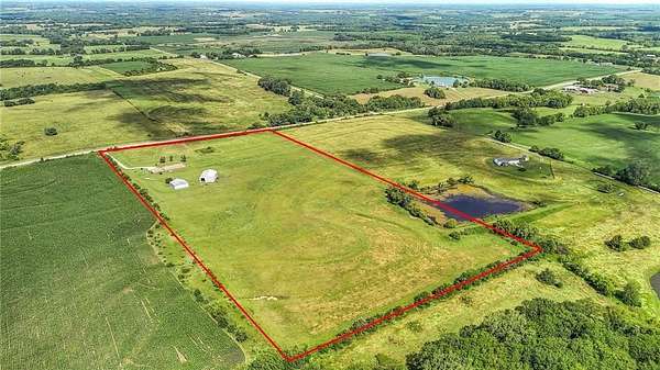 It has a 40'X60' barn with water and dirt floors, perfect for horses, a 32'x40' shop with concrete floors and electricity. A rolling, treed 20 acres that is fenced and has a pond.