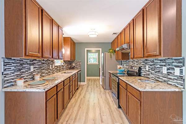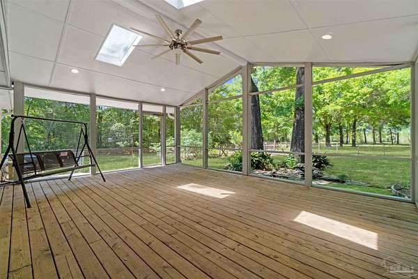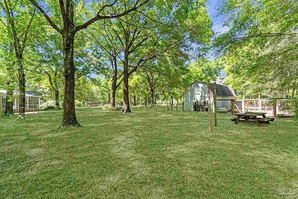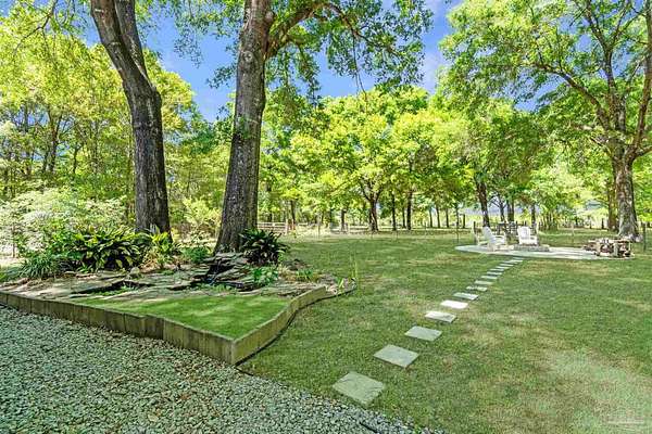 Imagine waking up to an endless view of towering oaks, nature sounds, and 211,000 acres of pristine Blackwater River State Forest just beyond your back fence. Set on 4.25 fully fenced and cross-fenced acres, this meticulously updated three bedroom, two bath home delivers the ultimate Northwest Florida lifestyle: kayaking, fishing, hiking, and horseback riding literally at your doorstep. Inside, luxury plank flooring, tall baseboards, a 2019 high-efficiency HVAC, and a 2020 roof create true move-in confidence. The cook’s kitchen pairs upgraded stainless appliances with beautiful granite counters and a walk-in pantry/laundry with ample space. A dramatic 15-foot sliding glass wall disappears to merge the great room with an oversized screened porch, framing sunset views across the pasture. All 3 bedrooms are very spacious and offer ample closet space. The main bedroom is situated as a split floor plan and offers an oversized closet. Both baths showcase Onyx countertops and frameless glass for a refined, spa-like feel. The exterior offers two-stall barn with power, kitchenette, tack room, and loft storage, complemented by a walk-in chicken coop, and storage shed, all supplied by multiple water spigots. This property features a concrete patio with a fire-pit area for easy outdoor entertaining. At the rear you'll find an entrance to the state-forest trails, one leading to the Black Water Canoe rentals. A covered two-car carport transitions into an oversized, storage shed complete with power. Picture weekend mornings feeding your horses, afternoons with the kids discovering secret corners of the woods, and evenings laughing with friends on the screened porch or gathered around the fire beneath a sky full of stars. Whether you're looking for an equestrian retreat, a self-sufficient property, or simply crave privacy and adventure minutes from Milton’s conveniences and white sandy beaches, 10806 Hatcher Street is ready to exceed your expectations! Schedule your tour today.