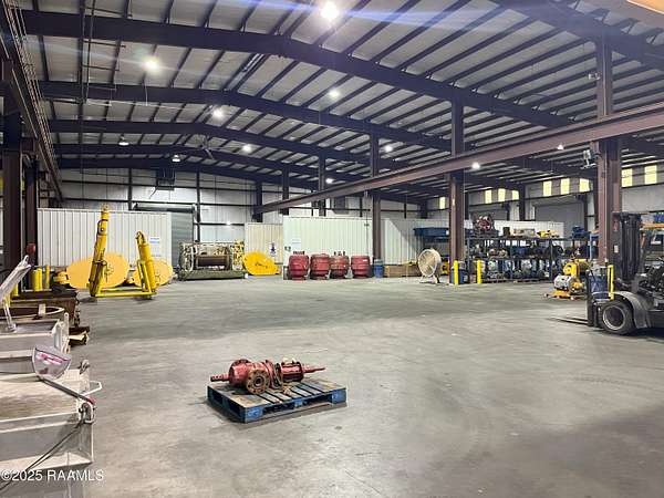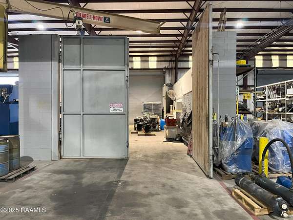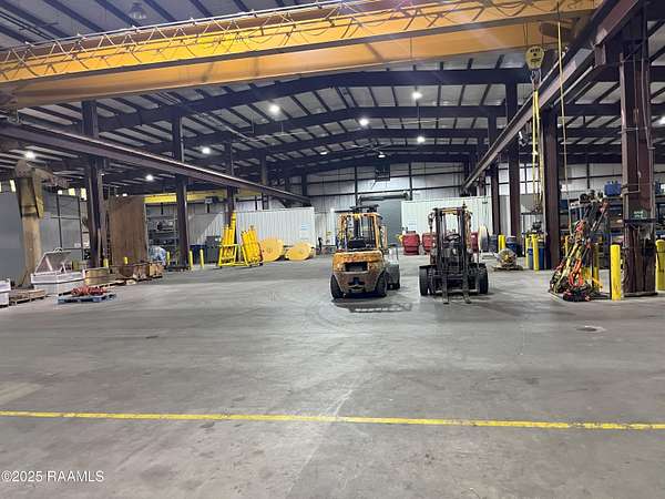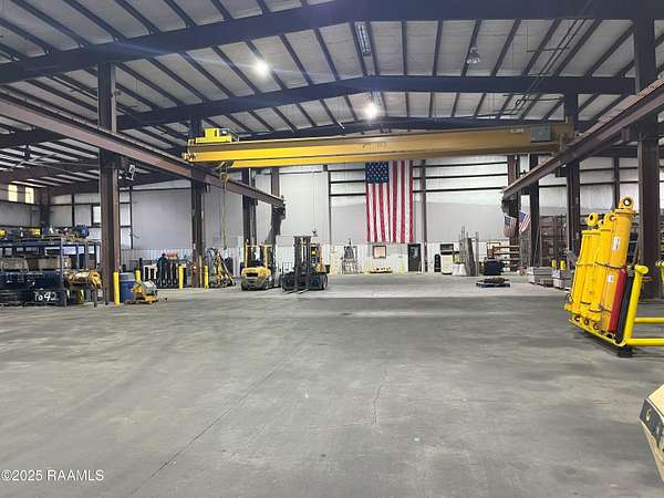 Large industrial facility with Hwy. 90 frontage, this industrial facility was built in 2009 and is in excellent condition. 23' eve height, 1-20 Ton bridge crane (20ft hook height), 1-10 ton monorail crane (17' hook height), 1-2 ton jib crane. 9 electric rollup doors in main warehouse (16' wide by 18' tall) and 2 rollup doors in secondary warehouse ( 14' tall by 14' wide). Three big ass fans in main warehouse. 4 electric access gates situated on 10+ acres. Entergy power, St. Martin Parish water, septic sewer, no gas.