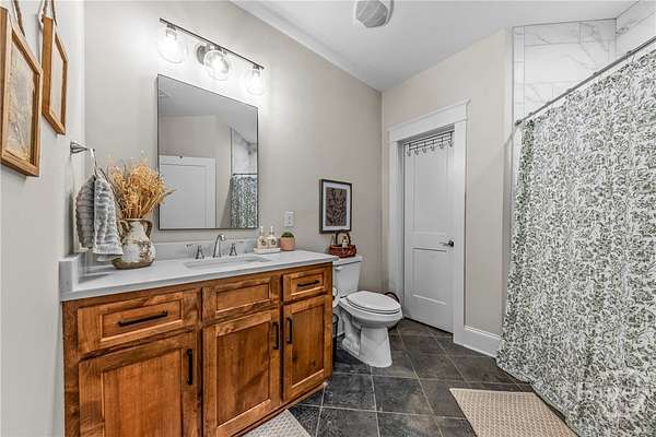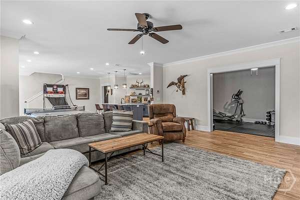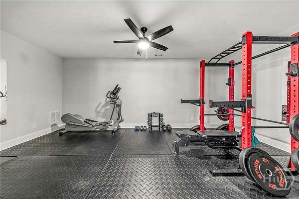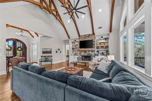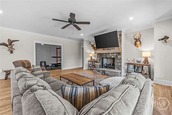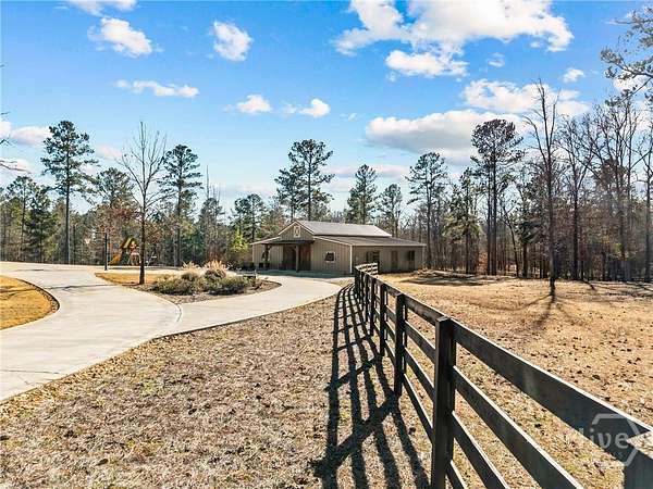 Tucked away on ten pristine acres, this exceptional estate offers an unparalleled blend of refined luxury, thoughtful craftsmanship, and complete privacy. This equestrian estate has everything you are looking for. From the moment you enter, the home's incredible attention to detail and jaw-dropping design elements make a lasting impression. This 5,218 sq foot 5 bedroom 4.5 bath home has an amazing open-concept floor plan showcasing soaring ceilings accented by custom wooden beams, creating an inviting yet grand atmosphere ideal for both everyday living and entertaining. The expansive living, dining, and kitchen areas flow seamlessly together beneath vaulted ceilings with wooden beams, large oversized windows creating tons of natural light and framed by serene wooded views. The chef's kitchen is a stunning focal point, featuring quartz countertops, a gas range, a pot filler, oversized quartz island, sink overlooking the private backyard, a large walk-in pantry behind custom double doors, and exceptional functionality wrapped in timeless style. The main-level owner's suite is a private retreat, offering a large space and beautiful wooded views through oversized windows and a spa-inspired bathroom highlighted by a striking barrel ceiling, soaking tub, dual vanities, large oversized tile shower with multiple shower heads, and separate his and hers custom built walk-in closets. Two additional main-floor bedrooms share a beautifully appointed Jack-and-Jill bath, with tile floors and tile shower. The large screened porch with high pitched wooden ceilings provide the perfect backdrop for morning coffee, evening gatherings, or simply enjoying the peaceful surroundings. Upstairs you will find a large oversized flex space that you can use to fit your needs, whether it be a play room, bedroom, gym, or office. The basement expands the living space significantly, and is beautifully done with functionality in mind. It features two bedrooms, two baths, a kitchen with a large island, beautiful gas log stone fireplace, a full gym, and an additional room that can be used to fit your needs. You can create a movie theater room, an additional guest bedroom, or an office. The basement has a large patio area with under deck roofing above. The home has a built in generator and a water filtration system serving the private well. Outdoors, the property truly shines as a luxury equestrian retreat. A large fenced pasture complements the three-stall horse barn, thoughtfully designed to match the home's architecture and provide ample storage for equipment. The level acreage and total seclusion create a rare and peaceful setting for both horses and homeowners alike. River's End homeowners also enjoy access to scenic community amenities, including a private sitting area along the Apalachee River and Hard Labor Creek, along with walking and riding trails throughout. Kayaking and canoeing to offer yet another way to connect with the natural beauty surrounding the property. You have to check out the neighborhood amenities when you look at this home. This serene countryside escape, with a remarkable 10-acre estate delivers total luxury and privacy, and a lifestyle that is truly a gem.
