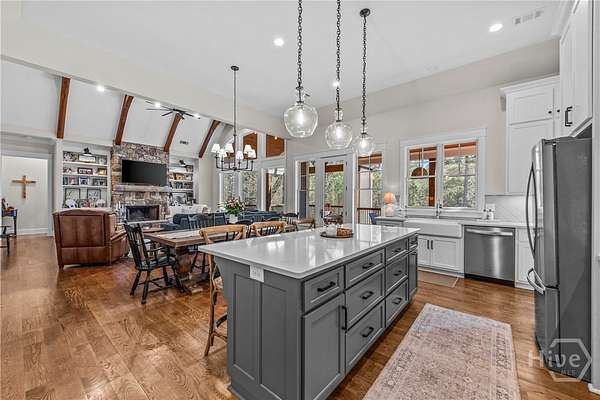- Bathtub, Built-In Features, Cathedral Ceiling(s), Ceiling Fan(s), Double Vanity, Entrance Foyer, Fireplace, Gourmet Kitchen, High Ceilings, Kitchen Island, Main Level Primary, Pantry, Primary Suite, Recessed Lighting, Separate Shower, Tray Ceiling(s), Vaulted Ceiling(s)