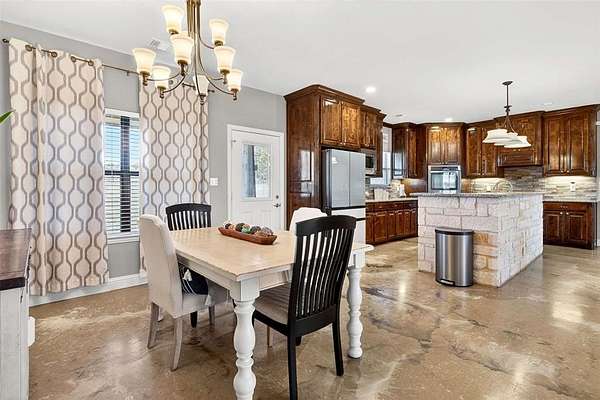 Inside, enjoy pet-friendly stained and sealed concrete floors throughout, a cozy wood-burning fireplace, and a spacious kitchen with granite countertops, stainless steel appliances, and ample cabinet space--perfect for everyday living and entertaining. The private, spacious primary suite offers a large walk-in closet and an oversized shower with dual shower heads.