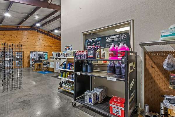 Excellent commercial opportunity in a high-visibility location just outside Pittsburg, Texas! This offering includes the former R & R Marine business along with the land and improvements, providing a great opportunity for a new or expanding business. Situated on almost 6 acres, the property features a 12,600 square foot commercial building built in 2003 designed for retail, service, and warehouse functionality. The facility offers expansive showroom space, office areas, service bays, and ample storage, making it well suited for marine sales, service operations, equipment sales, or a variety of other commercial uses. The facility offers expansive showroom space, office areas, service bays, and ample storage, making it well suited for marine sales, service operations, or other commercial uses. The building features concrete flooring, central HVAC, aluminum siding construction, and large work areas with excellent access for equipment and inventory. The property includes a large parking lot with convenient access from Loop 179, allowing excellent visibility and accessibility for customers and deliveries. This is a rare opportunity to purchase a successful business along with the real estate, land, and improvements, offering immediate operational potential with room to grow.
