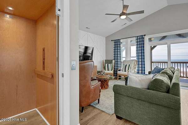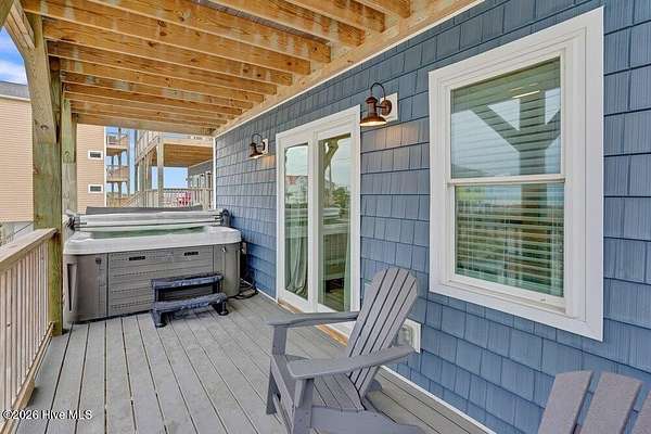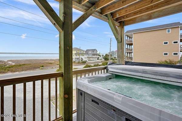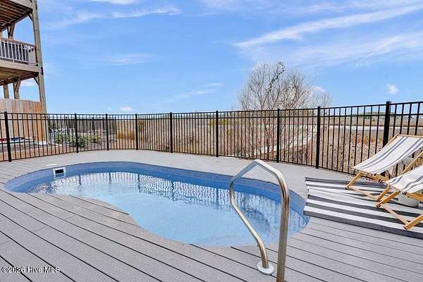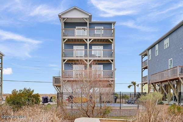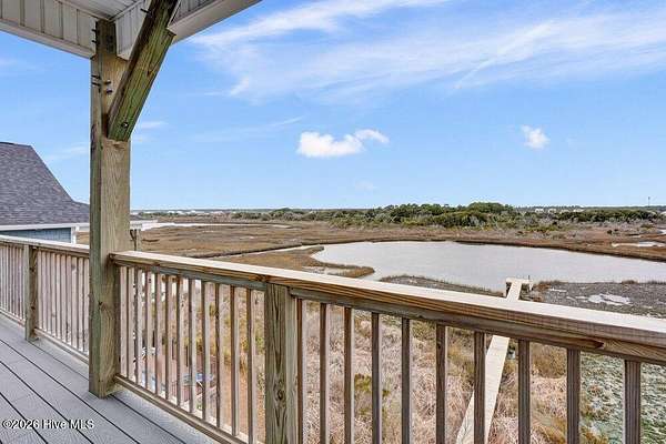 Panoramic water views take center stage, with unobstructed ocean, sound, marsh, and ICW vistas unfolding in every direction. Completed in December 2022 and thoughtfully positioned to capture the island's most beautiful sunrises and sunsets, this home was designed to make the view the focal point. Offered turnkey and fully furnished, it pairs effortless coastal living with proven performance, generating over $120,000 in rental income last year. Over 2,400 square feet of living space spans three levels, connected by a private four stop elevator for added accessibility and guest convenience. The home offers six bedrooms, including a spacious primary suite with an ensuite bath featuring dual vanities and a tiled walk-in shower. The top-floor living area captures pristine water views and serves as the main gathering space, where an open-concept kitchen with granite countertops and generous seating areas creates an easy hub for entertaining. Durable LVP flooring throughout provides low-maintenance performance ideal for coastal living and investment ownership. Outdoor living is designed for both enjoyment and functionality. Expansive Trex decks offer lasting durability, while a heated pool on the ground level and a six-person hot tub on the first living level create a true resort-style experience. A fire pit, dedicated putting green, and outdoor shower enhance guest appeal and everyday convenience. Under-house parking along with substantial on-site parking accommodations comfortably support full occupancy. Marsh-front positioning enhances privacy and delivers layered water views, with deeded waterfront access and a private dock for easy entry for kayaking, paddleboarding, and exploring the coastal ecosystem. A distinctive value component is the inclusion of the lot directly across the street (1104 New River Inlet), providing dedicated oceanfront access capabilities. That parcel carries a recorded easement for access should it ever be sold separately and developed--preserving beach connectivity and protecting long-term utility. Where early morning shoreline walks give way to golden-hour marsh views, this home delivers more than a beautiful setting--it represents a strategically designed coastal investment with enduring lifestyle appeal and strong income production. Just moments from favorite island restaurants, local shops, and year-round recreation, the location supports both exceptional ownership experience and sustained long-term value.