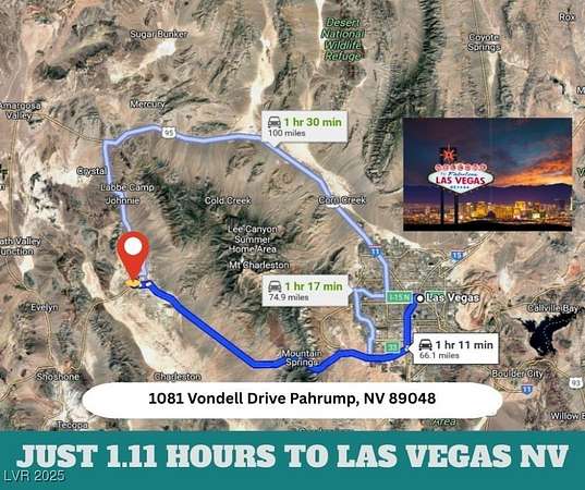 Discover endless possibilities at 1081 Vondell Street in Pahrump, NV! This expansive one-acre parcel is a blank canvas for your dream estate or secluded off-the-grid retreat. Surrounded by breathtaking desert landscapes and offering ample space for customization, this unimproved lot is perfect for those seeking privacy, tranquility, and limitless potential. Whether envisioning a modern sanctuary or a self-sustaining haven, this property provides the freedom to design without boundaries. Don't miss the chance to own a piece of Nevada's peaceful beauty--your future starts here!