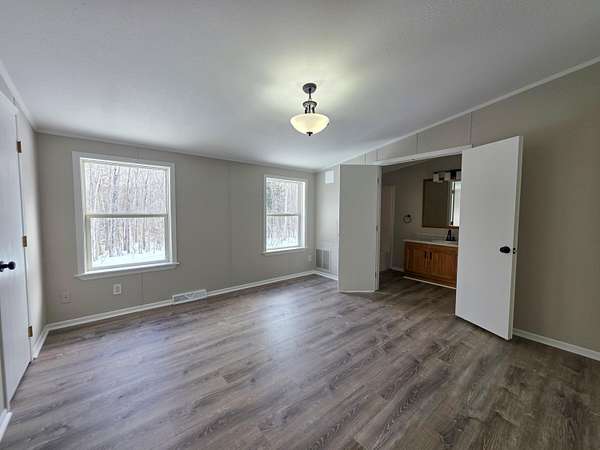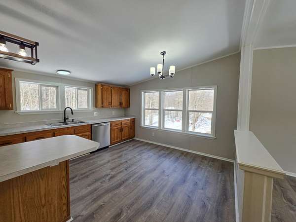 You'll appreciate the peaceful setting of this raised ranch situated on 20 wooded acres just 8 miles south of town. The home features a walkout, partially finished full basement. The main level offers a bright, open floor plan with new paint and flooring throughout. Recent updates also include a new furnace ,water heater and some new kitchen appliances. The home also features 2 bedrooms and 2 bathrooms, making it a comfortable and move-in-ready option. This is a Homepath property. All offers must be submitted through. This property has an affidavit of affixture on file.