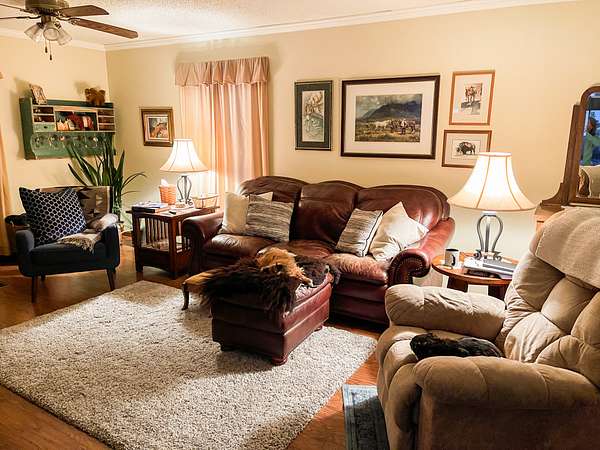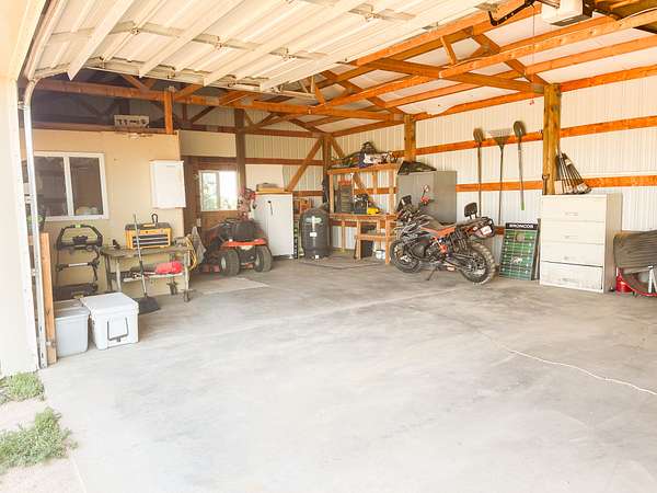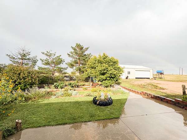 Main Residence: Built in 1995, this home totals 2,600 sq ft with a finished basement, 3 bedrooms, and 2 baths. It has a metal roof, Andersen window/door upgrades (2019), propane forced air heat, wood stove, and a 2,400-gallon cistern with a submersible pump in addition to ranch well access. The yard features mature landscaping and trees. Outbuildings include a 30? x 40? garage, garden shed, and two small corrugated metal animal shelters.