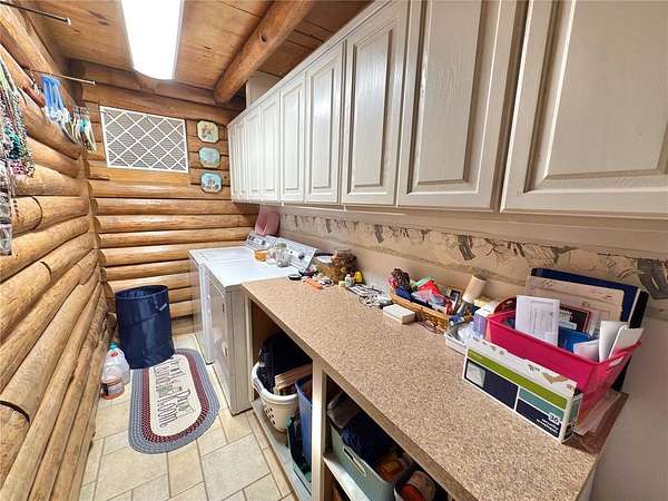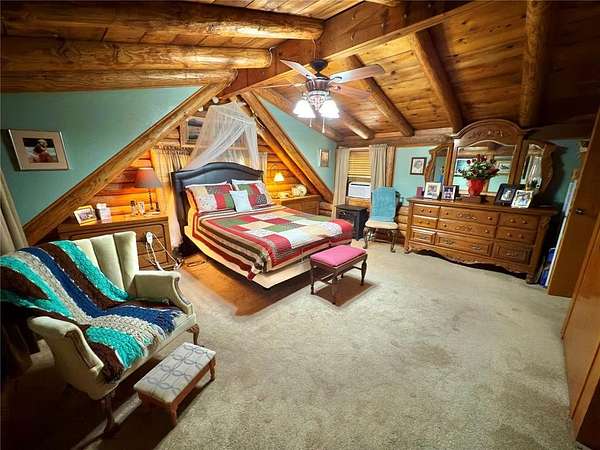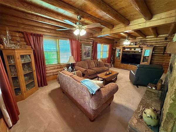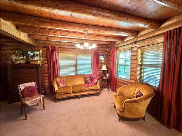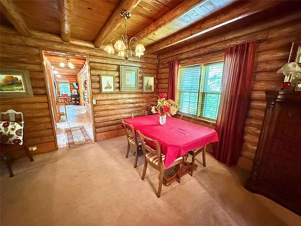 Dream Rustic Retreat: Authentic Log Home on 5 Private Wooded Acres with Massive Shop. Escape to your own slice of paradise in this breathtaking true log home - logs inside and out for that genuine cabin warmth and timeless rustic elegance. Tucked away on 5 lush, heavily wooded acres with a scenic winding driveway, this property delivers the seclusion and tranquility you've always craved, yet it's just 10 minutes from town for easy access to shopping, dining, and conveniences. Step onto the jaw-dropping front porch - perfect for morning coffee or evening sunsets - and feel the stress melt away. Inside, the home boasts 4 generous upstairs bedrooms and 2.5 beautifully remodeled baths, including a luxurious master suite with a separate shower and elegant freestanding tub. A convenient full bath with shower is downstairs, plus a half bath in the attached 2-car garage. The heart of the home shines with a fully remodeled kitchen featuring a large island, sleek stainless steel appliances, and abundant space for family gatherings. Relax in any of the 3 versatile living areas or enjoy meals in one of the 2 dining spaces overlooking the peaceful wooded views. For hobbyists, mechanics, or anyone needing serious storage/workspace: a huge 40x60 shop/barn awaits - ideal for vehicles, tools, projects, or even a home business. - Authentic log construction throughout - rustic beauty meets modern comfort - 2,800 sq ft of living space (built 1984) on 5 private acres - Remodeled kitchen & both full baths - Attached 2-car garage + massive detached shop - Ultimate country living with city proximity This rare gem combines classic log cabin charm with thoughtful updates in a serene, natural setting - perfect for families, nature lovers, or anyone seeking a peaceful escape without isolation. You truly must see it to appreciate the magic. Schedule your private tour today before it's gone - properties like this don't last long!