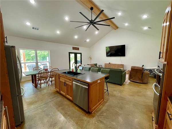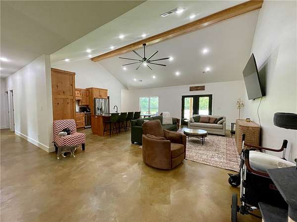 Welcome to this remarkable, less than 2 year old home, tucked away down a long private driveway for added privacy & charm. This beautiful property offers 5 bedrooms & 2.5 bathrooms, with a flexible layout that includes a potential home office plus a spacious game/bonus room. From the durable concrete floors to the soaring vaulted ceiling, every detail is designed for comfort & style. Enjoy the split floor plan, unwind & relax in the master soaking tub or the spacious walk in shower. Step outside to your own private retreat complete with a pond for fishing & plenty of room for outdoor recreation or farm life, including hunting right on your own 12.6 acres. Conveniently located approximately 3.5 miles to Nimrod Lake, 22 miles to Dardanelle, 26 miles to Russellville, 44 miles to Hot Springs Village & 51 miles to Hot Springs. Call & schedule your private showing today.