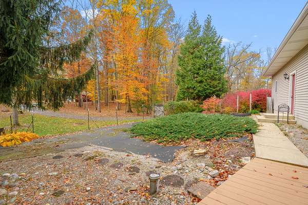 Rare Find! One owner ranch on over 10 acres with a pond and pole barn! Not many properties like this come on the market! This walkout ranch sits on over 10 peaceful acres, offering a true sanctuary with a pond stocked with bass and bluegill, full grown trees, and beautiful landscaping filled with flowers and perennials. Bird enthusiasts will love the variety of species spotted here (near the Oswalt Family Farm, known for over 156 species). The property also includes a large pole barn with electricity - perfect for storage, hobbies, or equipment. Enjoy main floor living with an open living room, dining, and kitchen area. The kitchen was beautifully remodeled in 2021 and features granite countertops, hardwood floors, tile backsplash, and included appliances. Just off the kitchen are the main floor laundry and a convenient half bath. One of the many