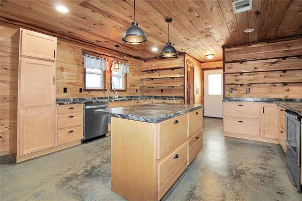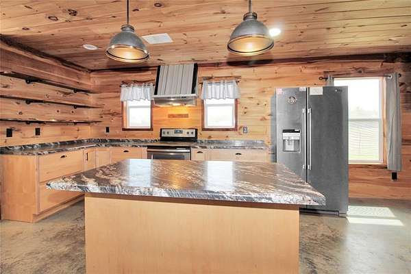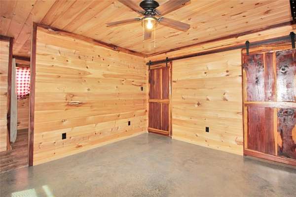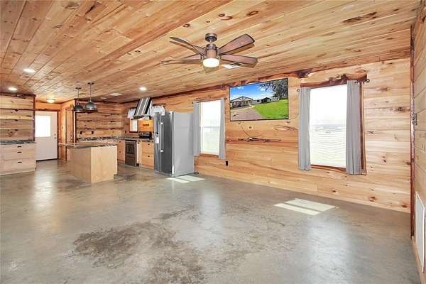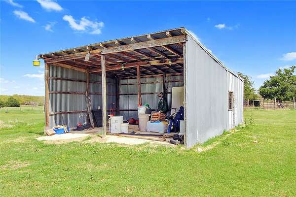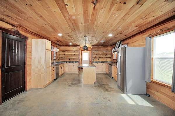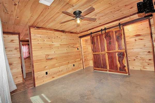 Welcome to your own private slice of Texas at 1082 Lagow Ln. in Scurry! Situated on 10 beautiful acres with a pond, this property offers the perfect blend of country living, functionality, and future potential. The land is fenced on three sides with additional cross fencing by a separate fenced area surrounding the home and buildings. The 2-bedroom, 2-bath home is tucked behind a row of mature cedar trees, offering privacy and a peaceful setting. Inside, you’ll find a warm, cozy cabin feel with wood walls and ceilings throughout and durable concrete flooring. The open-concept living and kitchen area features a center island with seating, beautiful cedar wood shelving, a walk-in pantry, and a laundry room with storage. The primary suite is full of character with double sliding cedar barn doors on the closet, plus an ensuite bath featuring a large soaking tub, walk-in shower with bench seating, and multiple storage closets. The secondary bedroom includes a versatile nook perfect for a desk or TV setup. A second full bath offers a standard tub-shower combo. Step outside and you’ll find everything you need for country living and more! The property includes a 30x30 metal horse barn with 2 sliding doors, a livestock wash rack, 20x15 lean-to with concrete floor, 13x20 chicken coop, 12x24 storage building, and a 30x12 RV-boat cover. The detached two-bay carport also features a 12x20 flex space previously used as a dog grooming room with wash station, perfect for a home business, office, craft room, or man cave. An additional homesite is already in place with existing concrete foundation runners, septic, electric, and well (previously servicing a mobile home), giving you endless possibilities to expand, add a tiny house, a second residence, or build your dream barndominium. Bring your horses, cattle, and chickens this one is ready for it all!