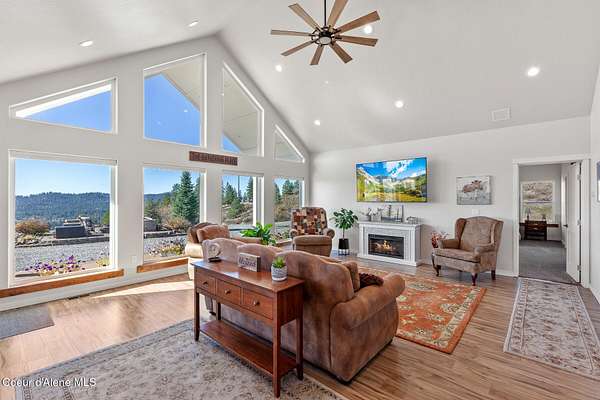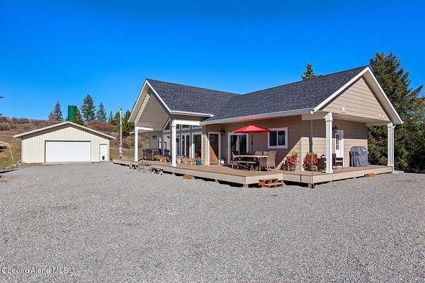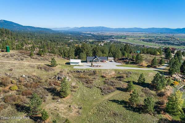 Looking for truly breathtaking views? This extraordinary property delivers panoramic scenery in every direction, overlooking the valleys of Hayden, Coeur d'Alene, Liberty Lake, Spokane, and beyond. From another vantage point on the property, take in the tranquil beauty of Hauser Lake -- the perfect backdrop for peaceful mornings and glowing evening sunsets. This newly constructed, single-level home offers 3 bedrooms and 2 bathrooms, thoughtfully designed to maximize natural light and showcase the surrounding landscape through expansive windows. Enjoy front-row sunsets with sweeping vistas from the comfort of your living space, from your 1100 sq. ft of decking, or your newly constructed gazebo. A second building site exists with in-ground electrical ready for another shop or 2nd home. And don't forget the trails for hiking or ATVs. Situated on over 10 private acres, this property offers the rare combination of seclusion and space-yet just minutes to town. This property generates $320 per month through an existing lease agreement with a local internet provider that maintains satellite equipment onsite and provides free high-speed internet. Experience privacy, beauty, and built-in value -- all in one exceptional North Idaho retreat.