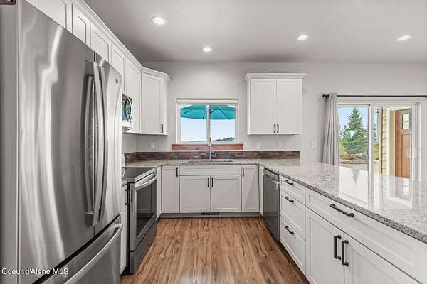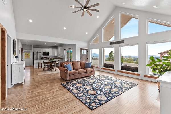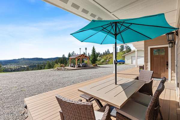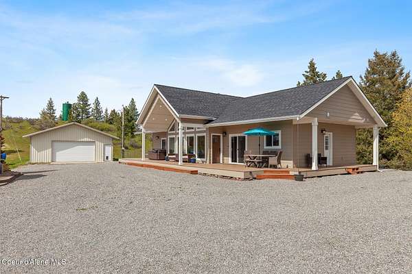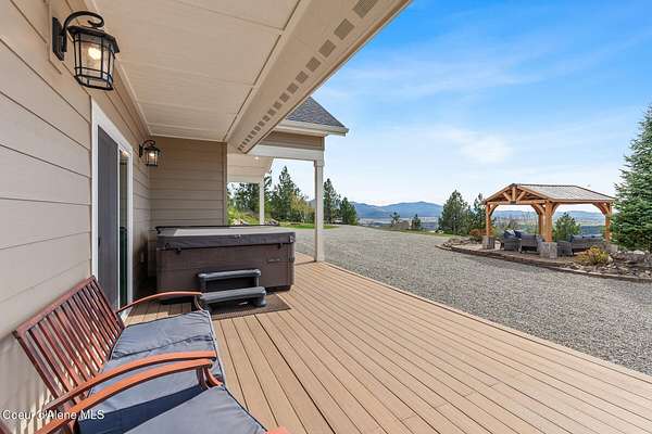 Looking for truly breathtaking views? This extraordinary property delivers panoramic scenery in every direction, overlooking the valleys of Hayden, Coeur d'Alene, Liberty Lake, Spokane, and beyond. From another vantage point on the property, take in the tranquil beauty of Hauser Lake -- the perfect backdrop for peaceful mornings and glowing evening sunsets. This newly constructed, single-level home offers 3 bedrooms and 2 bathrooms, thoughtfully designed to maximize natural light and showcase the surrounding landscape through expansive windows. Enjoy front-row sunsets with sweeping vistas from the comfort of your living space, from your 1100 sq. ft of decking, or your newly constructed gazebo. A second building site exists with in-ground electrical ready for another shop or 2nd home. And don't forget the trails for hiking or ATVs. Situated on over 10 private acres, this property offers the rare combination of seclusion and space-yet just minutes to town.