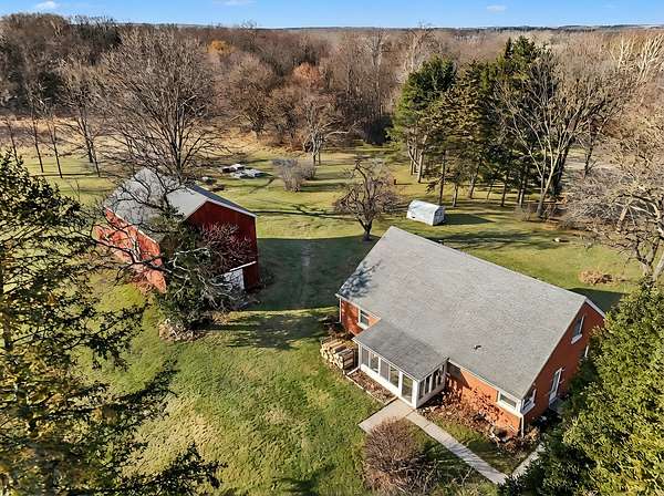 OPEN SAT 1-10-26 from 1-3. Visit this timeless Cape Cod retreat set on 5.36 picturesque acres in Alamo Township, complete with a classic, large two-story barn that adds character & versatility. A spring-fed pond, mature trees & rolling acreage create a peaceful setting just minutes from town. Inside, beautiful wood floors & a thoughtfully updated kitchen with a large center island set a warm, inviting tone. The main level offers two bedrooms & serene views of the property. The three-season room on the south side of the home is ideal for relaxing, while the north-facing balcony overlooks the pond, offering a quiet place to enjoy the scenery. The walkout lower level features a family room, an additional bedroom, a full bathroom & a wet bar, perfect for entertaining or gathering. The large attic offers future expansion potential for additional bedrooms, a rec room or home office. With open land, natural beauty & a classic barn, this property delivers space & country living at its best.
