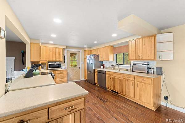 5 Acres of Pure Colorado Beauty! Breathtaking views from every window in this 4 Bedroom 2 Bath Home . The Main level features hardwood flooring throughout a beautiful kitchen with stainless steel appliances, 2 bedrooms and a full bathroom. The full basement has 2 bedrooms, full bathroom and a family room that walks out to the large pines and abundant wildlife! Relax and get Cozy in this amazing home just in time for the holidays!