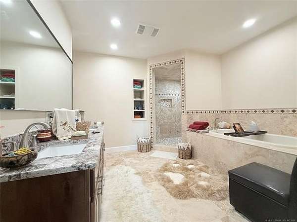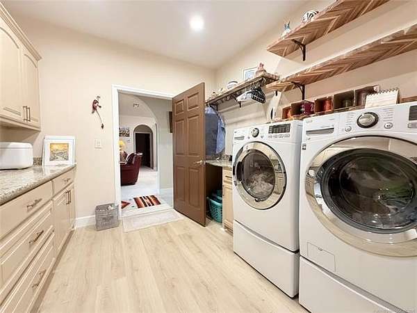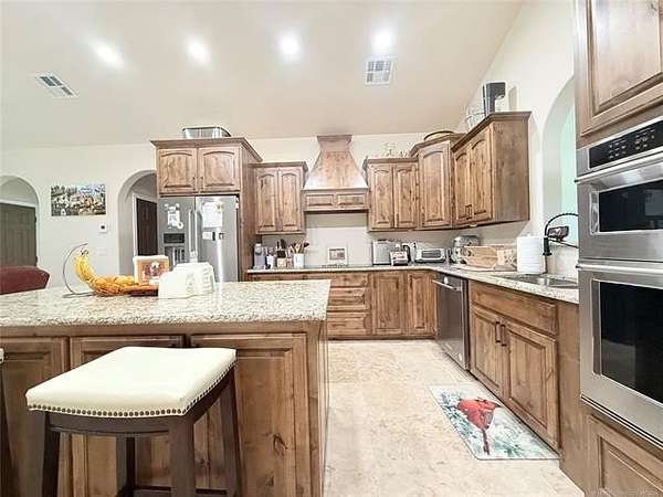 Discover this extraordinary custom-built home nestled on 2.59 m/l acres in a serene, tranquil location. This 5 bed, 2.5 bath (with an extra room that could be an office, playroom, etc.) hidden gem offers the perfect fusion of exquisite luxury and comfortable everyday living. From arched doorways to steam showers, travertine and slate flooring to a double filtration/purification water purifier, custom fixtures, and blackout custom blinds, this magnificent home boasts high-end, custom features. This home is truly a work of art. The architecture is simply stunning, with meticulous attention to detail. The impressive kitchen is a chef's dream come true! It features custom cabinets with drawer pull-outs and soft-close doors/drawers, a spacious pantry, and an oversized kitchen island that serves as a stunning centerpiece for gatherings. Thoughtfully designed, the house is zoned for two hot water heaters, two HVAC systems, and a robust laundry room/mud room which includes new washer and dryer that remain with the property and has ample space for all your needs. With a true spa-like retreat, the master suite offers a double sink vanity, a walk-in shower, a separate jacuzzi tub, and a walk-in closet that you'll love. Escape to the wonderful front porch, where you can enjoy a peaceful and serene get away. This move-in-ready home is brimming with extra touches that make it truly unique. Come and see this gorgeous property for yourself and make it yours today!