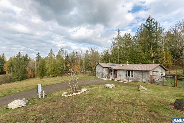 This 5-acre property is located at 1083 Blyn Springs Rd in Sequim, WA 98382. The property is available for sale for $595,000. It has a 1,200 sq ft 2 bedroom, 1 bath house built in 2007.