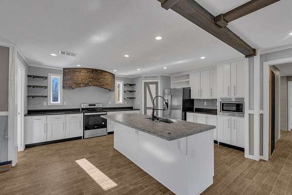 Beautiful and like-new 3 bedroom, 2 bath home on 14.63 acres at 1083 Fanchers Mill Rd. This property offers the perfect blend of modern comfort and wide-open space, with three RV parking spots already in place. Inside, you'll find an open, light-filled layout with updated fixtures throughout, walk-in closets, and a massive pantry that's a dream for storage and entertaining. The kitchen flows seamlessly into the main living area, making everyday living feel easy and connected. Natural light pours in through large windows, highlighting the fresh finishes and thoughtful design. Step outside to enjoy a covered back porch and a charming outdoor seating area, perfect for relaxing or hosting guests while taking in the peaceful surroundings. With acreage, functionality, and a move-in-ready feel, this property is truly a rare find.