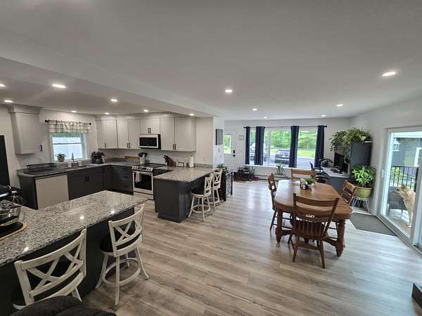 Est $2,790/moBrand new 2024 custom-built 4BR, 2.5BA home on 10 private acres with oversized 4 car garage and wraparound cedar deck. Designed with care and loaded with upgrades, this open concept home offers high end cooks kitchen with soft close cabinetry, solid granite counters, double bar top and sleep white stainless appliances.