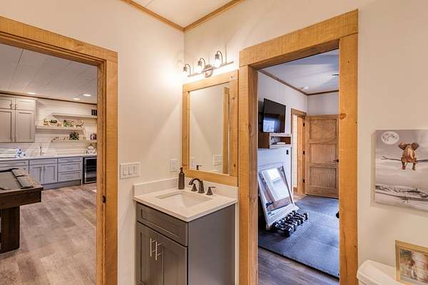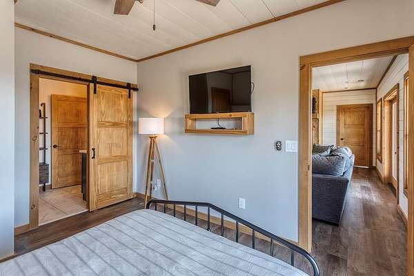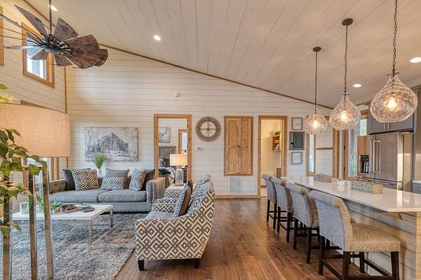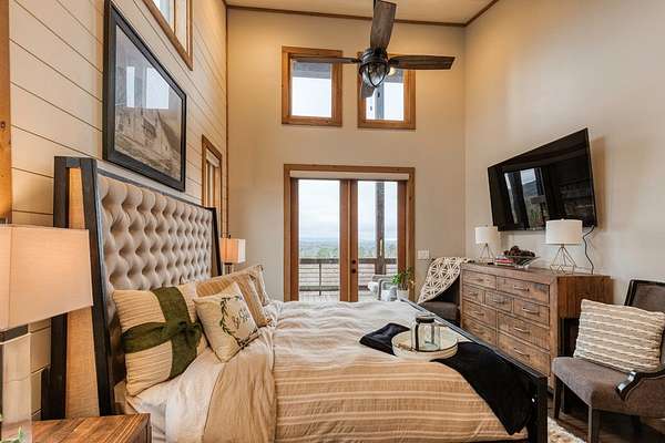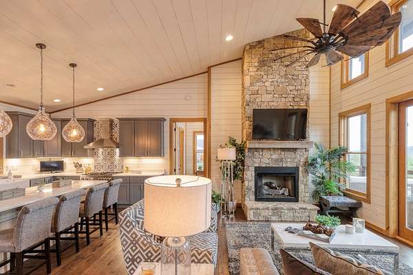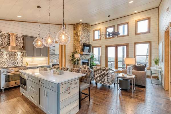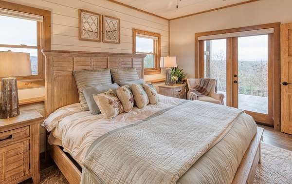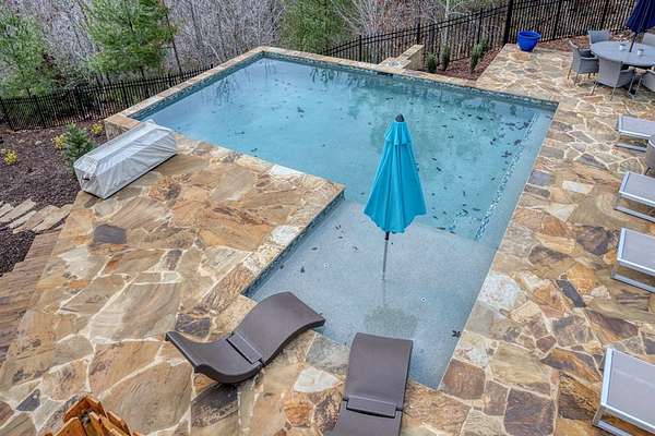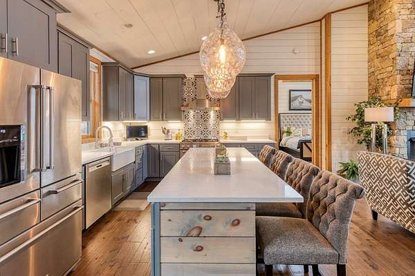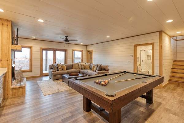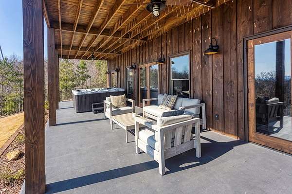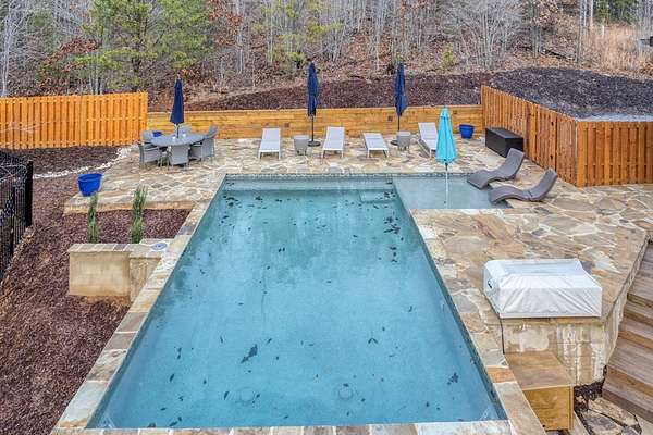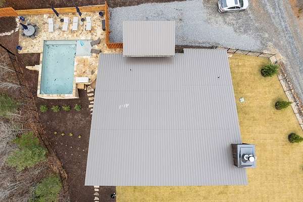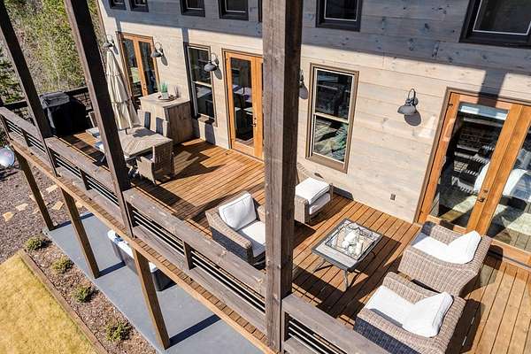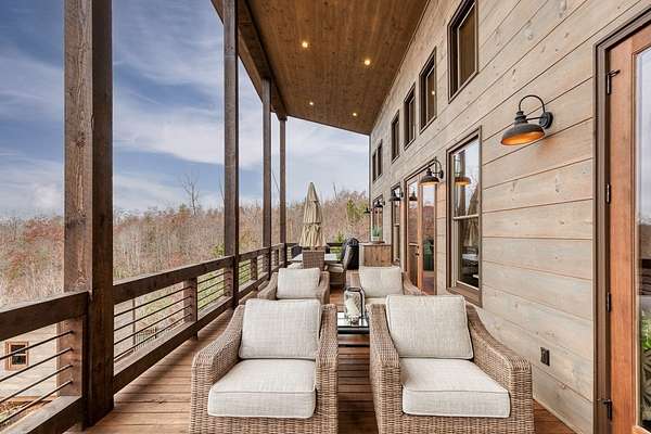 This luxurious Blue Ridge Mountain Escape offers unmatched features starting with a pristine and unique pool overlooking the mountain landscape, an element that immediately sets this property apart, along with an outdoor grill and a spacious backyard perfect for family fun; the expansive deck further enhances outdoor living with a fireplace, outdoor dining area, and a hot tub, allowing owners to sit in the hot tub or swim in the heated pool while watching the sunrise over the mountain range. Inside, the home boasts an open-concept modern-rustic kitchen and living space, complemented by a dedicated game room on the main level featuring a wet bar, wine cooler, fireplace, and pool table. The upper level hosts the King Suite with private deck access, mountain views, and a large walk-in bathroom with a classic standing tub and a wet-room style shower, plus a second bedroom also offering private deck access, mountain views, and a naturally lit walk-in shower. The lower level includes two King Bedrooms, each with a personal bathroom and smart TV, as well as a convenient laundry room, while the lower back porch provides an additional fireplace and a roofed space for games and outdoor activities, all contributing to a property that is highly sought after and won't last long, so appointments should be made today.