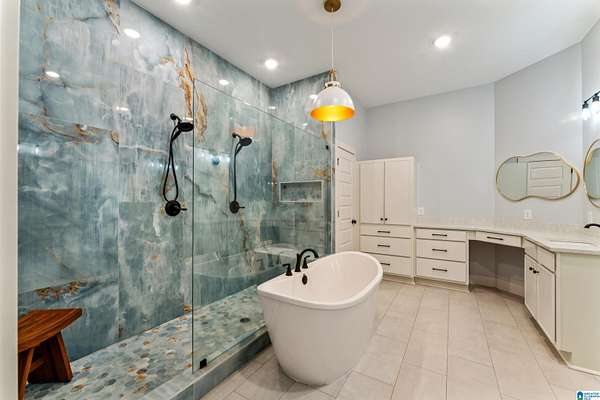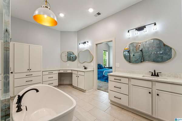 - Double Shower, Garden Tub, Linen Closet, Recess Lighting, Shared Bath, Tub/Shower Combo, Walk-In Closets, Wet Bar