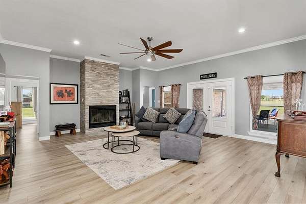 Exceptional opportunity in the heart of Haslet's esteemed North Ridge Estates, a neighborhood celebrated for its spacious lots, peaceful ambiance & strong sense of community*JUST LIKE NEW, BUT BETTER! Built in 2020, this 4 bedroom, custom home of 3245 SF, nestled on an expansive 2.34-acre cul-de-sac lot, offers a rare blend of modern luxury & rural tranquility*The open-concept layout centers around a chef-inspired kitchen featuring premium finishes & lighting, Samsung black stainless appliances, double convection ovens, gas cooktop, cabinet space & countertops galore, generous breakfast bar, walk-in pantry, wine fridge beneath the wine bar, & spice drawer & utensil caddy surround cooktop*Kitchen flows seamlessly into living & dining areas perfect for both everyday living & entertaining*Living room w-WBFP & double doors to backyard patio & pergola-covered deck*Primary suite provides a serene retreat w-spa-like bath*Separate vanities, oversized jetted tub, huge shower w-multi spray jets & walk-in closet*3 secondary bedrooms offer ample space for your guests*Bonus room can serve as a home office, media room, or play area, adapting to your lifestyle needs*Luxury Vinyl Plank flooring thru-out*Barn door separates kitchen from utility room & powder bath*Friends-door gives your friends direct access from the driveway*Outside the vast acreage invites endless possibilities, from creating a backyard oasis w-a pool if desired, or enjoying gardening, or playing your favorite sport*3-car garage w-ample storage & epoxy flooring*32 X 14 storage building with roll up door, driveway parking for RV's, boats & trailers*Residents enjoy the benefits of a peaceful subdivision w-NO HOA, NO CITY TAXES & easy access to top-rated schools, shopping & dining*New Kroger is just around the corner*Hwy 287 is 5 min away*It's more than just a home; it's a unique opportunity to embrace a lifestyle of comfort, space & community!