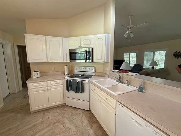 - Blinds, Breakfast Bar, Ceiling Fans, Eat-In Kitchen, Electric Dryer, Electric Range, Garbage Disposal, Laundry Tub, Laundry/Utility Room, Living Room, Microwave, Open Floor Plan, Pantry, Satellite Dish, Smoke Detector, Top Load Washer, Water Softener, w/ Hookups