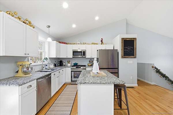 Built in 2023, this spacious 4 bedroom, 3 bathroom home offers modern comfort on nearly 4 acres of land bordering 246 acres of Audubon Land Trust conservation property. The main level features an open layout with vaulted ceilings, abundant natural light, and a well appointed kitchen and living area. A main level primary bedroom with an en-suite bathroom provides convenient living. The lower level adds exceptional flexibility with an additional bedroom, full bathroom, and walk-out access ideal for extended living space, guests, or a private home office. Energy efficient solar panels reduce utility costs, and a paved driveway adds low maintenance convenience. Located close to shopping, dining, major employers, and daily amenities, this newer home offers both privacy and accessibility in a natural setting.