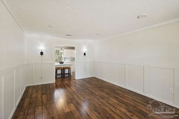 Fully renovated 3,190 sq ft all-brick home situated on 4 private acres in Chumuckla, FL. Renovated top to bottom, this property offers space, flexibility, and major system updates for true move-in-ready living. Inside, you'll find engineered laminate flooring, two spacious living areas downstairs, and two back-to-back fireplaces that create warmth and character between the main gathering spaces. The large, centrally located kitchen flows seamlessly into a spacious formal dining room, ideal for entertaining or hosting family gatherings. A convenient half bath is located off the main hallway for guests. Upstairs features four bedrooms and two full bathrooms, offering a functional layout with sleeping quarters separate from the main living areas. The downstairs secondary living area offers excellent flexibility and could easily be converted into a primary suite with a full bath if desired, making this home suitable for multi-generational living or a first-floor master option. The oversized mudroom/laundry room provides additional storage and practicality. Major upgrades include a brand-new roof, new heat pump, all new HVAC units (inside and out), new electrical panel, and brand-new windows. Step outside to a covered back porch overlooking the quiet backyard - the perfect place to unwind and enjoy the peaceful setting. With 4 acres of usable land and a fully updated brick exterior, this property offers the best of country living with room to grow.