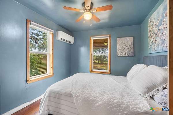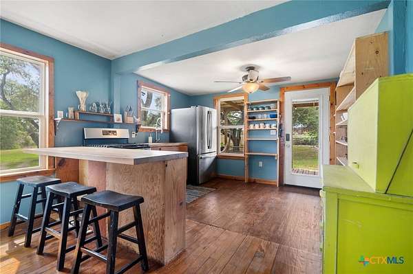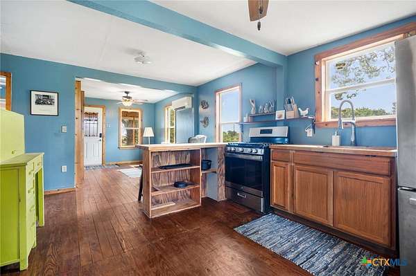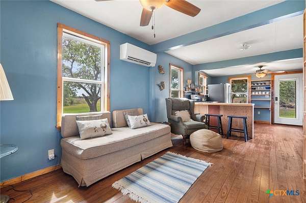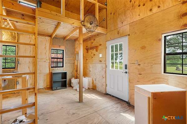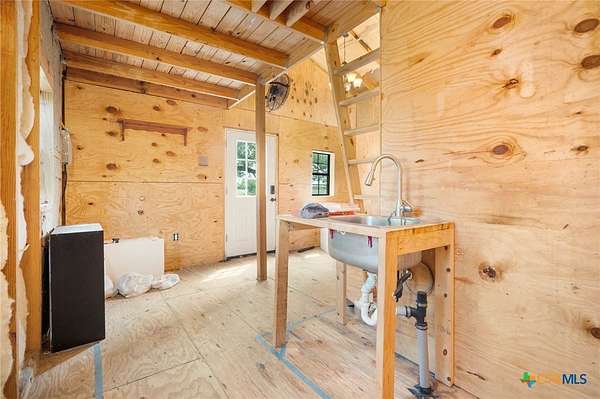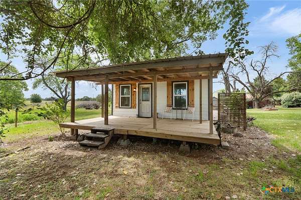 Escape to the Country on 9.67 acres in Harwood, TX, on Hwy 90. The property features a cozy one-bedroom home, a ready-to-be-finished cabin, a barn, a chicken coop, a fenced-in area, shelters for smaller livestock, and approximately 7 acres for growing and/or grazing. Just 12 miles to HEB in Luling, 14 miles to HEB and Walmart in Gonzales, and 8 miles from the Luling Lavender Farm! The home has been lovingly refurbished with wood flooring, wool insulation, HardiePlank siding, Zip System exterior weather barrier, under-floor insulation, hand-built cabinets and counters, and open shelving. The property has mature oaks, Mustang and Muscadine grapevines, and other Native Texas trees. With its approximately 50-gallon holding tank and new pressure switch and gauge replaced in February 2025, the water well is ready to water your animals and garden. The septic system is only 3 years young. The approximately 400-square-foot cabin would be an excellent studio or guest house space when finished. This structure has electricity and has been pre-plumbed with PEX to the kitchenette and bathroom. The barn features a cement slab floor and is equipped with electricity. A new metal roof, mini-splits, a gas range, and a refrigerator were all installed in 2020. New tankless water heater in 2022. Check out the wildlife