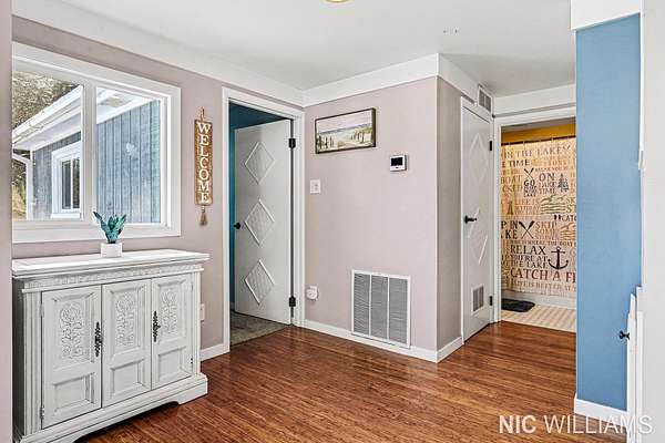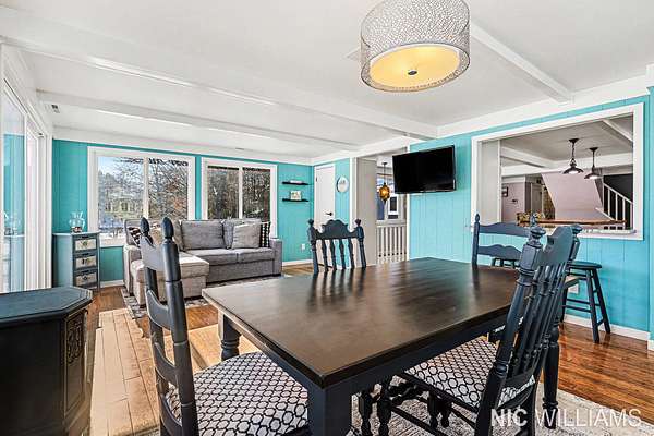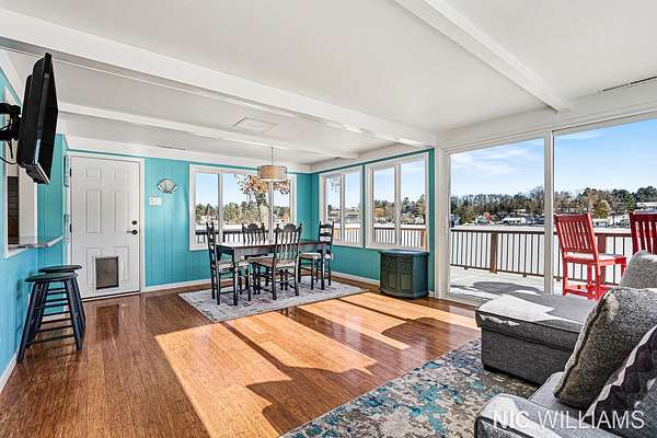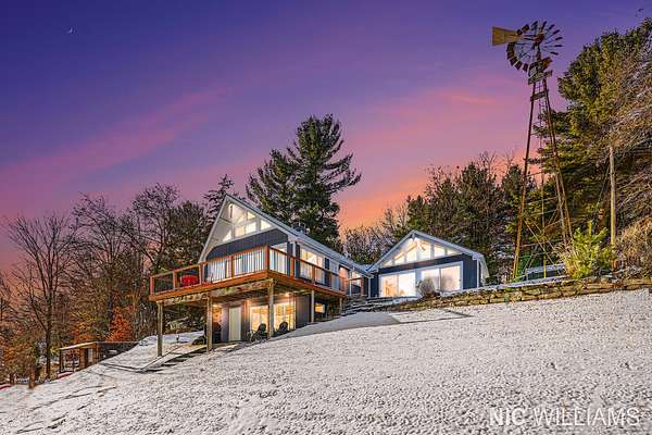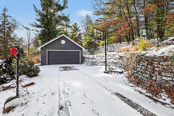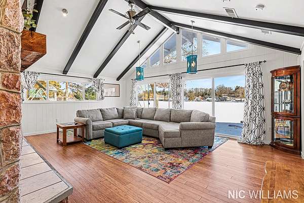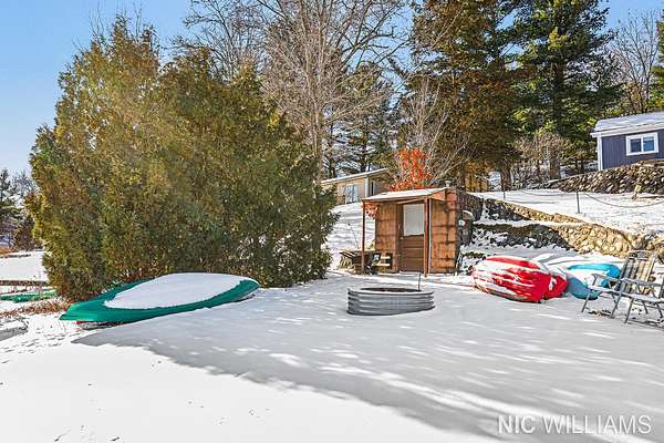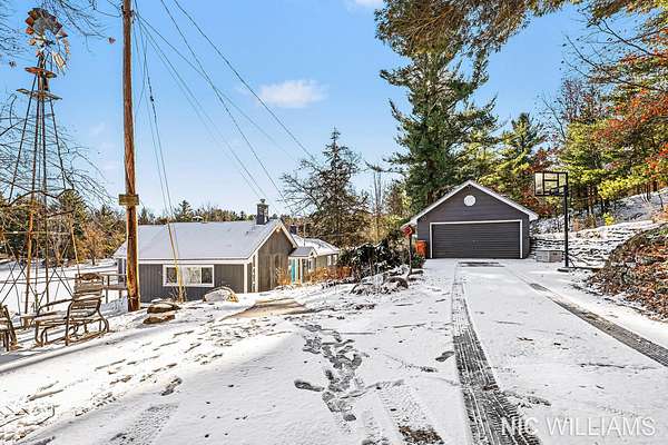 Welcome to your dream home at 10848 Simpson West, your lakefront sanctuary on Little Blue Lake. This property offers 175 feet of all-sports frontage on a pristine, 60-foot-deep lake, inviting year-round fun, from water sports and boating in the summer, to ice skating and ice fishing in winter. Two parcels totaling 1.5 acres, with a two-stall garage and a convenient pole barn to store all your summer and winter toys. Inside, the home showcases beautiful open-concept living with expansive lake views framed by abundant glass. During the summer, enjoy your morning coffee on the deck and then step out the backdoor to your own sandy waterfront escape. For the winter months, cozy up by the wood-burning fireplace while enjoying the beautiful winter views just outside. The two parcels (10848 and 10840 Simpson) present exciting opportunities: maintain the existing home, build a second residence, or sell the additional parcel to suit your plans. Property can be used as a vacation rental as well! Located just 35 minutes from Grand Rapids and a short 10-minute drive to groceries, restaurants, and shopping in Greenville, this property blends tranquil lakeside living with practical proximity to city amenities. An exceptional investment or perfect year-round residence, this home invites you to embrace the lakefront lifestyle from day one. With summer just a couple months away, don't wait for the spring rush to secure your waterfront retreat!