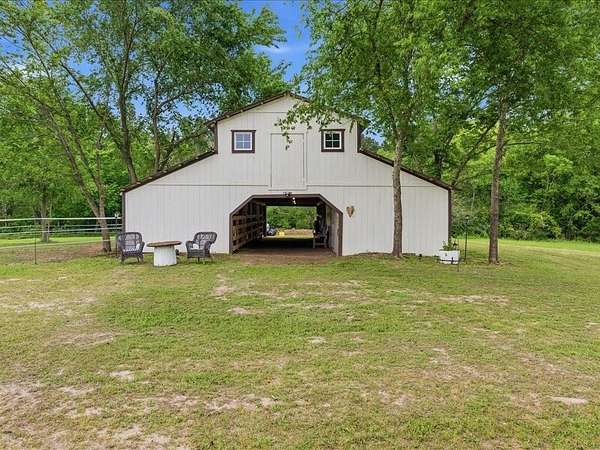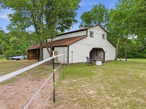 Situated just minutes from the Davy Crockett National Forest! This property could be the retreat away to quiet country living that you have been dreaming about! Over 10 Ag Exempt acres that have both ample pastureland and dense wooded areas. A picturesque pond provides a great view from the back yard. Newly renovated Horse or Cattle Barn with ample room for several individual stalls or a large undivided shelter for horses to come and go as they please. Barn has restroom facilities and separately enclosed tack room, as well as an expansive hay loft with stairs leading from the tack room. Home itself is clean with functional updates to kitchen, and flooring that did not take away from the original charm. The floor plan is open with enough space to host gatherings. Surrounded on all sides by large tracts of land this place truly feels like an escape!