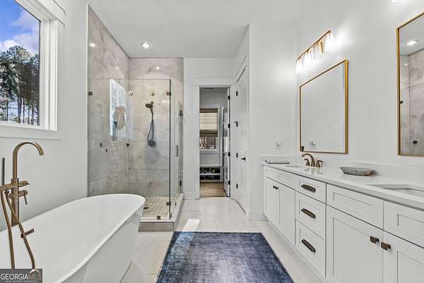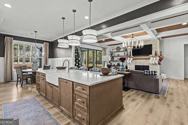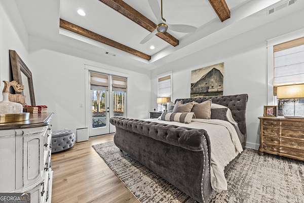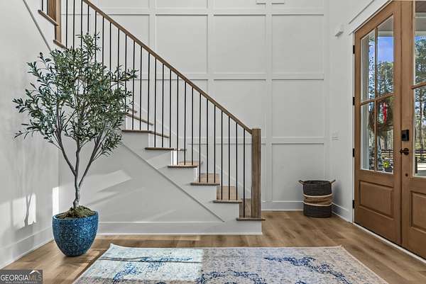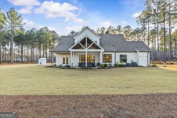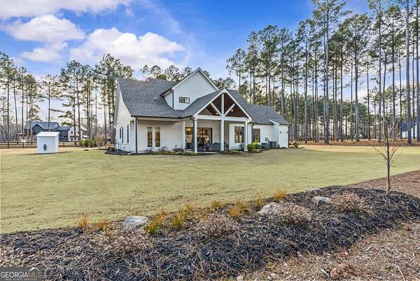 Welcome to this stunning, nearly new corner-lot home built in 2024, where thoughtful design meets upscale finishes throughout. Situated on 3.2 fully fenced acres with dual gated entrances. From the moment you step inside, you're greeted by soaring ceilings that set the tone for the home's elegant design. To the left, a formal dining room provides the perfect setting for hosting. The spacious living room features eye-catching coffered ceilings, custom built-ins, a beautiful fireplace, and an entire wall of sliding glass doors that flood the space with natural light while overlooking the expansive backyard. The living area flows seamlessly into the chef's kitchen, complete with a massive island, abundant custom cabinetry, stainless steel appliances, a pantry, and a cozy breakfast nook-ideal for everyday living and entertaining alike. The luxurious owner's suite is conveniently located on the main level and offers a private retreat with a spa-like bathroom, custom walk-in closet, and direct access to the backyard. On the opposite side of the home, you'll find an additional bedroom, a full bathroom, a well-appointed laundry room, and a functional mudroom. Upstairs, the home continues to impress with three generously sized bedrooms, a full bathroom, and a large bonus room that can easily serve as a playroom, home theater, office, or flex space to fit your needs. Additional highlights include a three-car garage, beautifully landscaped grounds, and a separate side-road entrance-perfect for RV parking or accommodating guests. Conveniently located with easy access to Downtown Monroe and Athens, this exceptional property offers the perfect balance of luxury, comfort, and location.