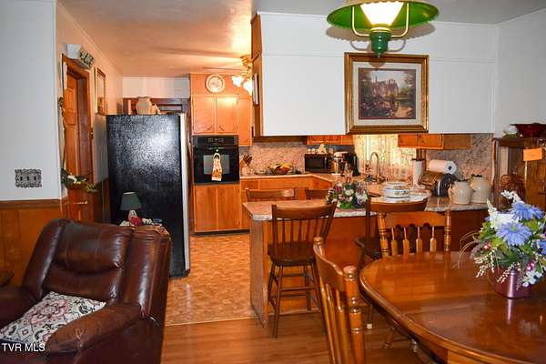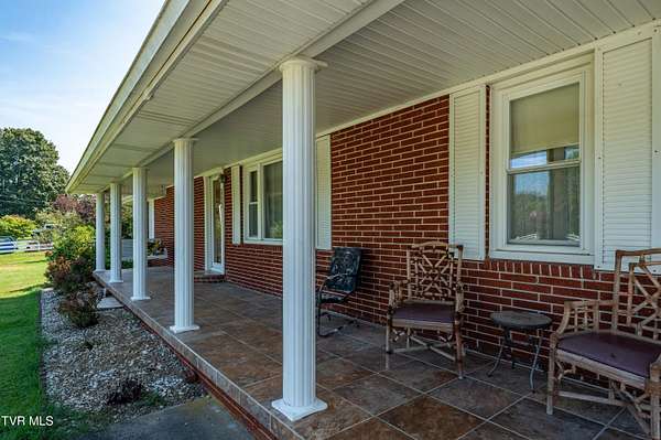 1085 OLD STAGE ROAD- Take a tour of this lovely three bedroom brick home that contains approximately 1392 sq ft of living area. Living room, kitchen with dishwasher, refrigerator, built in oven and range top, large den and dining room combo with fireplace, bathroom, partial basement with flue and wood stove, laundry hookups, and shower. Heat pump, metal roof, front porch, attached carport, detached carport, storage building, and two yard barns, concrete driveway, lots of landscaping. Highspeed internet is available. Home is currently connected to well water, but also has public water on property. conveniently located less then 30 minutes to Kingsport, and 10 minutes from Historic Rogersville..Buyer and buyers agent to verify all information herein.