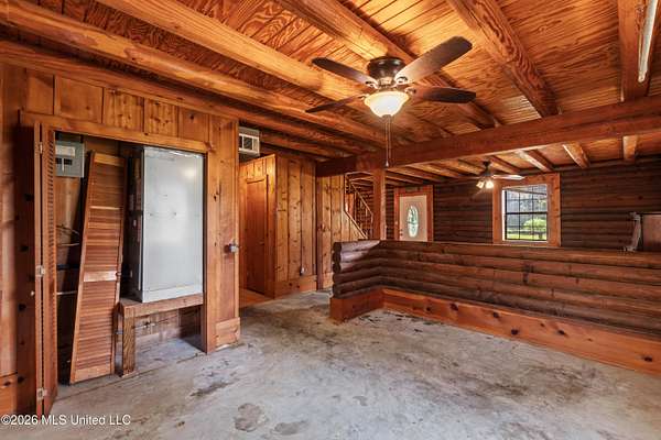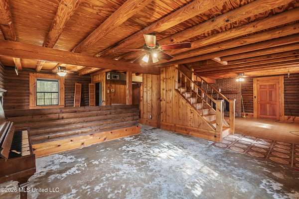 Charming rustic log cabin set on a scenic lot in Lumberton! This 3-bedroom, 2-bath home offers a comfortable blend of character and functionality. Inside, you'll find rich wood details and a wood-burning fireplace that creates the perfect cabin atmosphere for relaxing evenings. The flex space offers versatility for a home office, playroom, or additional living area. Outside, enjoy the ease of a circle drive, a detached 2-car garage, and a storage shed for tools and outdoor equipment. Surrounded by natural beauty, the property provides a peaceful setting with plenty of space to enjoy the outdoors. Don't miss your opportunity to own this inviting cabin-style home with timeless appeal!