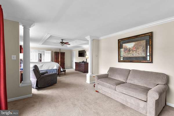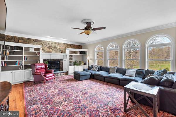 This stunning custom-built estate is perfectly situated on a private 5.6-acre lot, backing to hundreds of acres of undeveloped wooded land for ultimate privacy and natural beauty. A sprawling front porch welcomes you with breathtaking rolling countryside views, creating a peaceful retreat while still being conveniently close to shopping, dining, and major commuter routes. With 7,800 sq. ft. of finished living space across three levels, this move-in-ready home offers 8 spacious bedrooms, 5 full bathrooms, and 1 half bath. The gourmet kitchen is a chef's dream, featuring granite countertops, large island that seats 10 and includes plenty of storage below, stainless steel appliances, a large pantry, and a cozy table space sitting area. The main level also boasts a formal dining room, a sunroom filled with natural light, and a warm and inviting family room complete with built-ins, stone accents, and a gas fireplace. A dedicated laundry room with cabinets, washer, and dryer adds convenience to daily living. Upstairs, the owner's suite is a true retreat, offering a tray ceiling, a private gas fireplace in sitting room, an enormous walk-in closet, and a luxurious en-suite bathroom with granite countertops, a large step-in shower, and a whirlpool tub. An adjoining bonus room provides the perfect space for a home office, sitting area, or workout space. The upper level also includes three additional generously sized bedrooms one of which has its own full bathroom and all with ample closet space. The fully finished lower level is designed for entertainment and relaxation, featuring a theater room, a large storage room, and 2 additional bedrooms with a full bathroom and gas fireplace and kitchenette with granite countertop and washer dryer hook-up Outside, the property is just as impressive, featuring a 3-car garage, a large driveway with additional parking pad, an additional gravel driveway with field access and additional parking with (2) 30 amp hookups and (1) 50 amp hookup RV pad, beautifully landscaped grounds surrounded by mature trees. Whether you're looking for a peaceful retreat, a multi-generational living space, or a home designed for entertaining, this estate offers it all. Don't miss this rare opportunity to own a truly one-of-a-kind property-schedule your private showing today!
