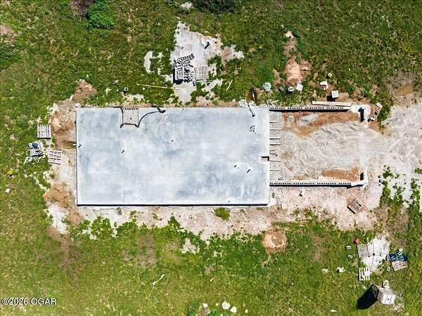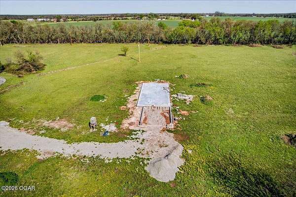 Start your next chapter with a head start already in place on 7 fenced acres where horses are welcome. This property offers the groundwork for your future home, with the slab poured, road installed, two culverts in place, and two wells already on site. Picture designing a space that fits your vision. The planned layout features an open living, kitchen, and dining area with room for an island, creating a central gathering space. A south-facing porch or sunroom was part of the original plan, offering options for added living space filled with natural light. The layout was designed as a two-bedroom, two-bath home with a dedicated laundry room and a zero-step entry throughout. The owner's suite was planned to include a spacious, zero-entry shower for easy access and comfort. A two-car garage was outlined, with the flexibility to expand into additional attached side-entry garage space if desired. Garage doors were designed to face west. The fencing is already in place, providing a secure and defined boundary. The property backs to open farmland, offering wide views and added privacy with no direct neighboring homes. Located less than a mile west of Red Oak II, this property combines peaceful surroundings with convenient access. Bring your ideas and complete the vision that's already underway.
