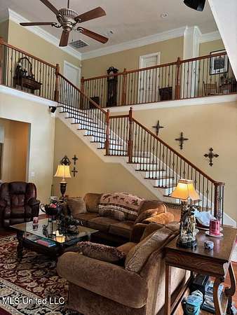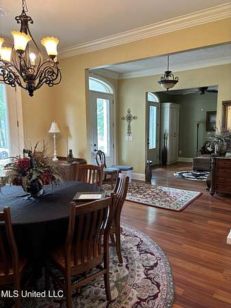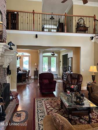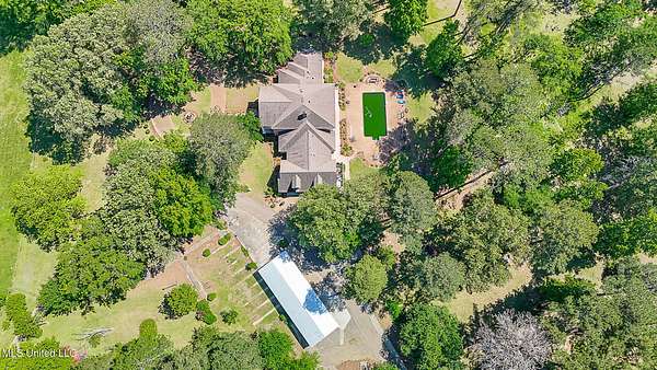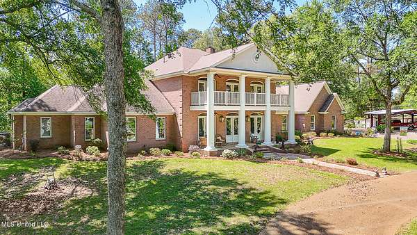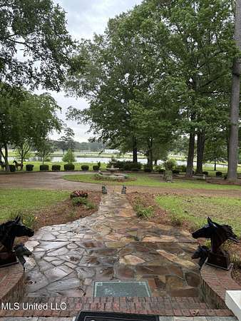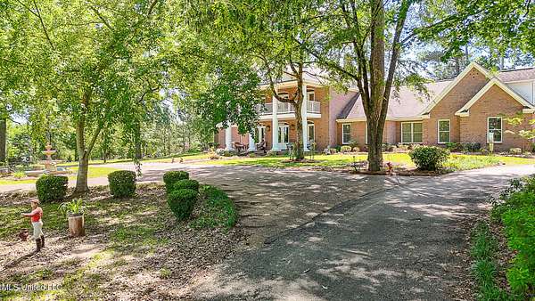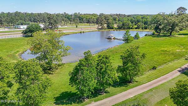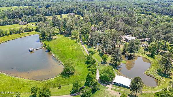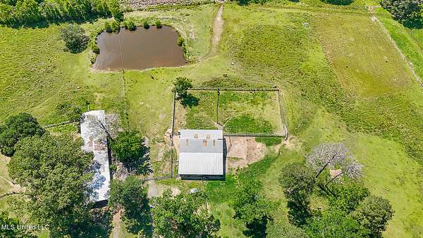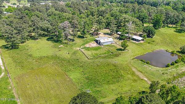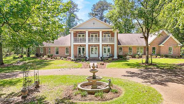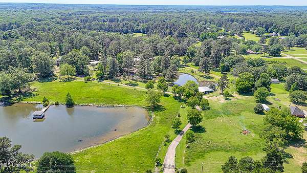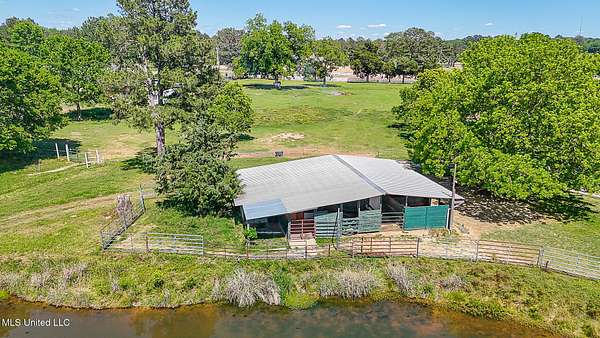 Southern Living! Enter the gated, curving driveway around a large pond w/gazebo to a custom-built 2-story home on 40 acres. Inside there are cherry wood floors throughout most of the home. A formal dining room, formal living room, and the great room all overlook the patio and pool. The great room has a wood burning fireplace w/gas starter. One side of the downstairs is devoted to the primary suite, which features a gas fireplace, jetted tub, oversized shower, double vanity, a linen closet, a separate office, a laundry room and a storage area. The kitchen has a large island with a prep sink, granite counter tops, double ovens, oversized refrigerator and separate oversized freezer, and a large eat-in breakfast room overlooking the pool. Upstairs are 2 bedroom with baths. These rooms open to the inside walk- around balcony, witch overlooks the downstairs area. The inside balcony features French doors that open to the outside balcony over looking the pool. There is a interior hall that leads to a attached apartment with private entrance from the outside. This could also be a fourth bedroom or media room with a full bath. The property has cross-fenced pastures, a horse riding area, 4 barns with a total of 23 stalls. Each barn has its own tack room with water and electricity. 3 ponds and several covered sheds for RVs, vehicles and equipment. These sheds are fully equipped with electric plug-ins and sewer for on site camping. The owners have boarded several horses on the property and also offered riding lessons.