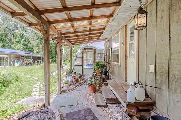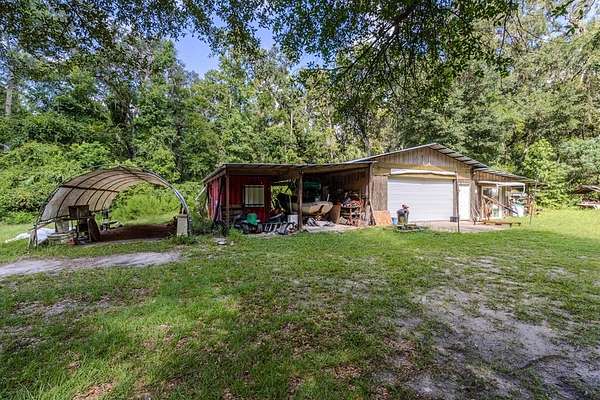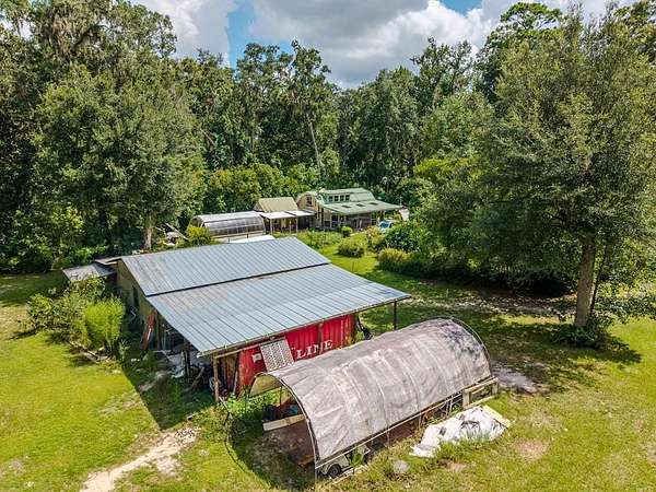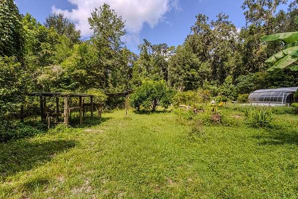 Escape to nature with this private 5-acre retreat in Old Town! Tucked back off the road, this cozy cabin features a wood stove, Florida room with French doors, and an insulated greenhouse with a partially sunken 12' ozonated pool--great for therapy or exercise. Sustainable living is at the heart of this property with multiple fruit trees (tangerine, orange, mulberry, grapefruit, banana, fig, blueberry & grapevine), garden beds, a composting setup, bamboo grove, and a small fishpond for irrigation. Enjoy outdoor living with a screened gazebo, flowering azaleas and magnolias, and a fire pit area. Bonus features include a storm shelter, 12x8 insulated storeroom, wood/solar hot water system, and access to a private Suwannee River boat ramp & park for just $75/year. Truly a one-of-a-kind getaway or full-time homestead! This property is a rare find for those seeking privacy, sustainability, and the serenity of living close to nature while still being just minutes from town and the Suwannee River. Call today to schedule your private tour!